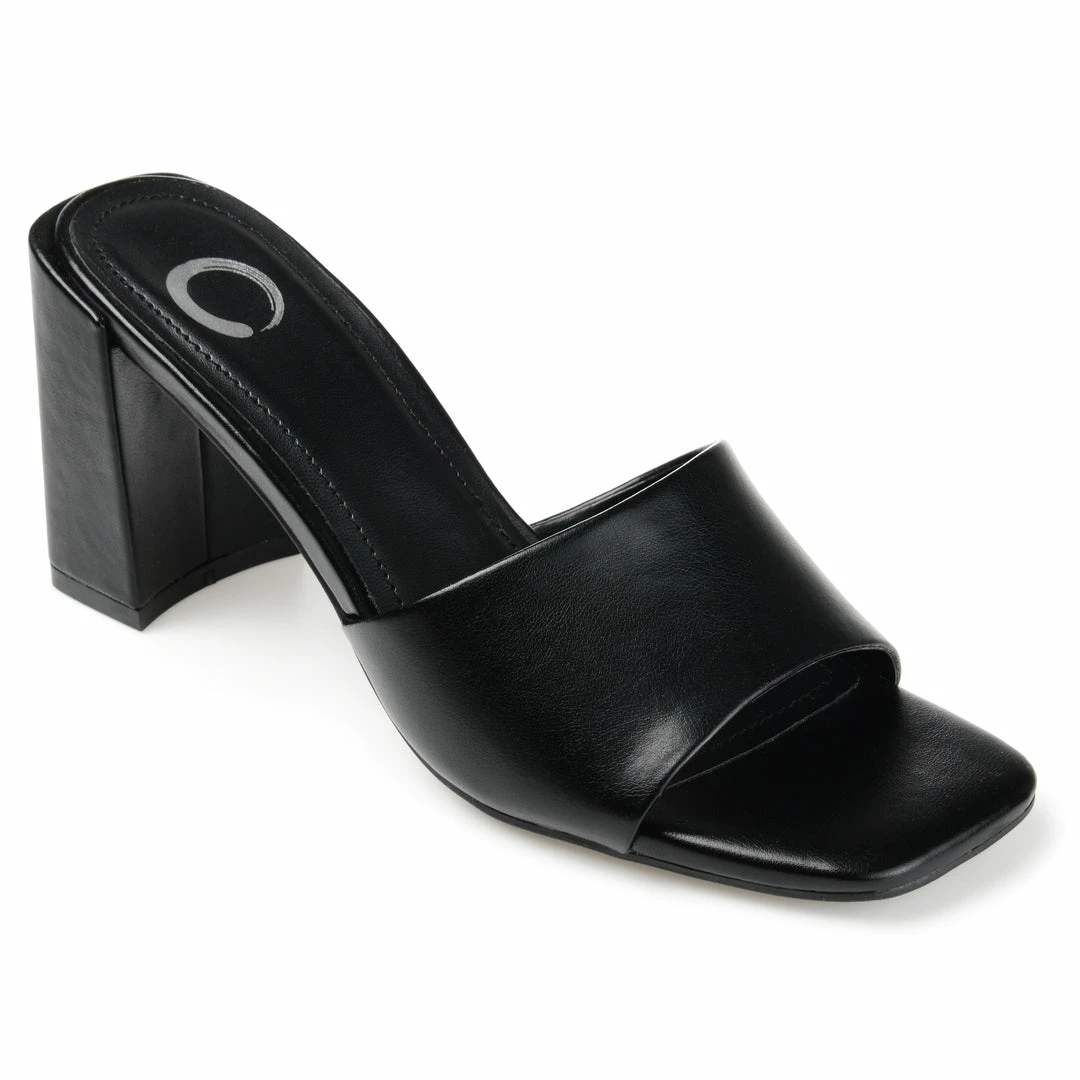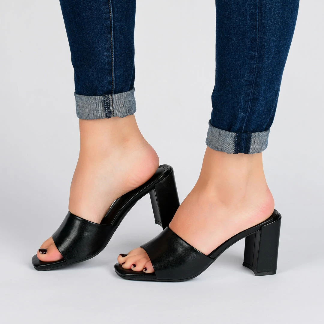 A covered half-block heel and square-toe, what could be more divine? The Alisia by Journee Collection is topped with a banded strap-shaped with vegan leather. A padded footbed lines the insole so you can walk as fiercely as you look. Heel Height – 3 1/4-inch Heel Type – Block Heel Platform Height – Flat-inch Shoe Width – Medium Closure Type – Slip-on Toe Style – Open Lining – Faux Leather Upper Material – Vegan Leather Outersole Material – Man-made Footbed – Padded