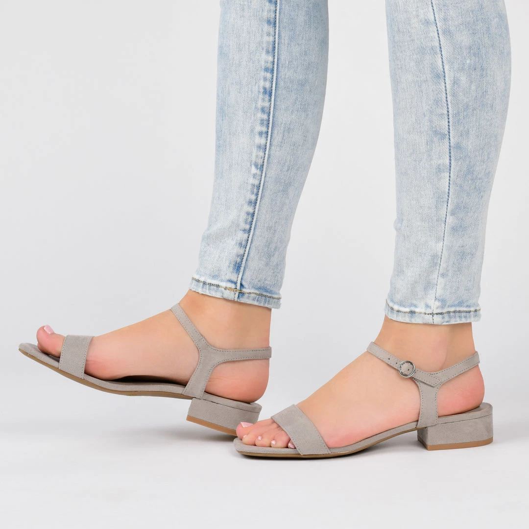 The Beyla pump is as versatile as it is elegant. This simple shoe features a block heel covered in a faux suede material and a square toe. One single toe strap and an ankle strap with a rounded buckle complete this gorgeous look. Heel Height – 1 1/4-inch Heel Type – Block Heel Platform Height – 1/2-inch Shoe Width – Medium Closure Type – Buckle Strap Type – Ankle Toe Style – Open Lining – Faux Leather Upper Material – Faux Suede Outersole Material – Faux Suede over Synthetic Footbed – Padded