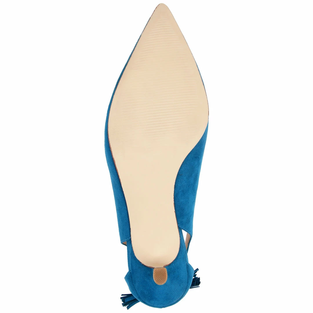 Pointed toe perfection comes with the Bindi heel by Journee Collection. This classic kitten heel features a sleek pointed toe with side cut-outs, and a fringe bow design. Unique and class combine to make this fabulous heel. Heel Height – 1 1/2-inch Heel Type – Kitten Heel Platform Height – 1/2-inch Shoe Width – Medium Closure Type – Slip-on Strap Type – Ankle Cuff Toe Style – Pointed Lining – Faux Leather Upper Material – Faux Suede Outersole Material – Faux Suede over Synthetic Footbed – Padded