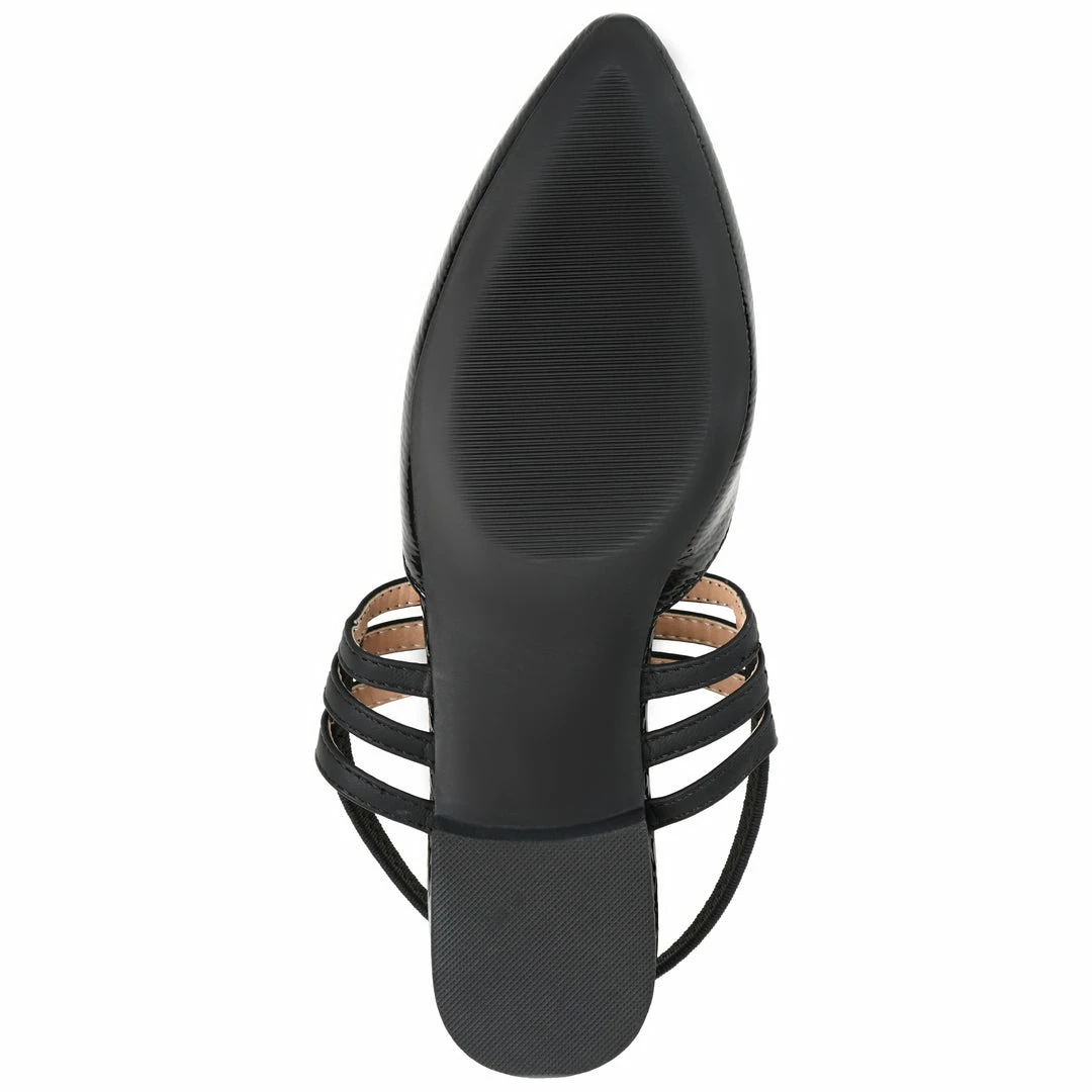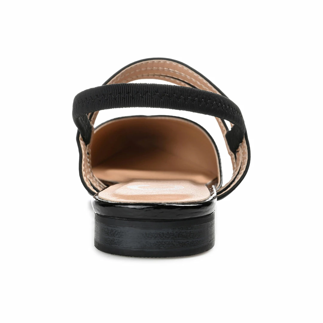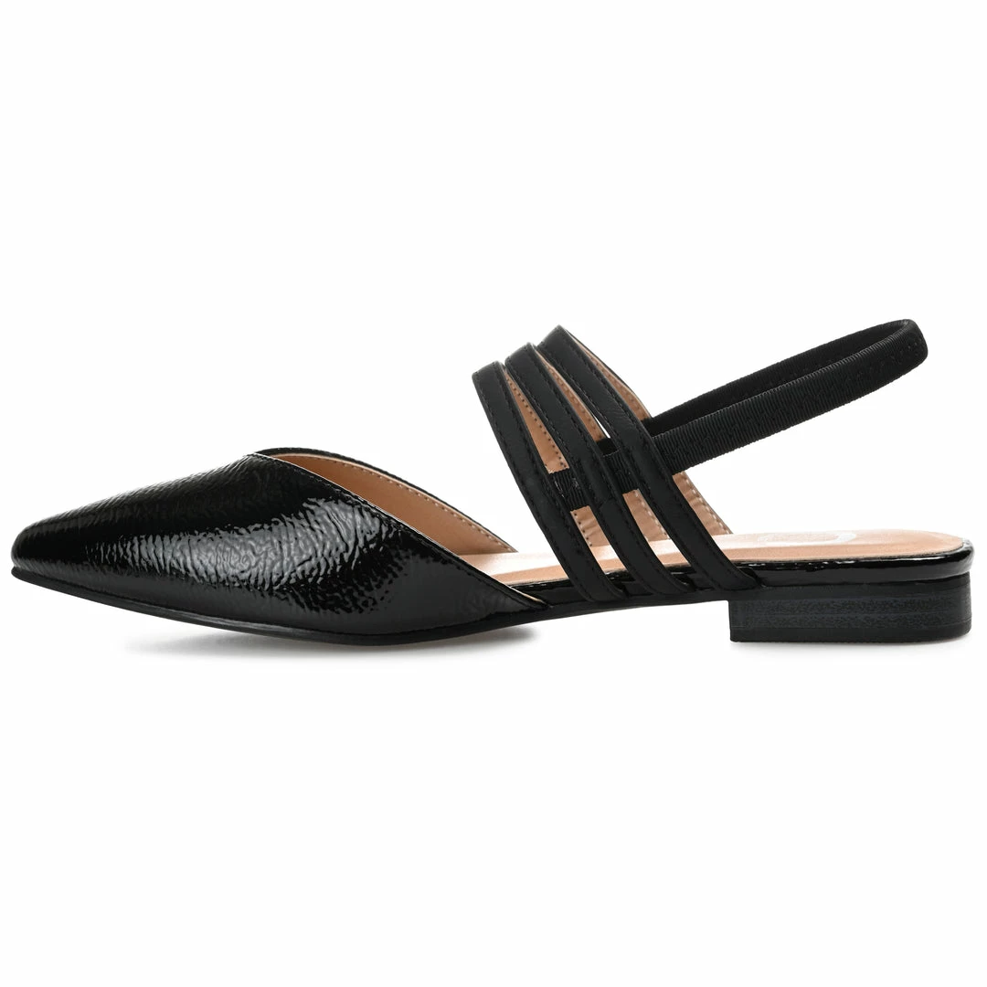 An easy flat with vintage details from our favorite fashion era, the Brinney by Journee Collection. This vegan leather slingback is detailed with stacked straps at the vamp and a sweetheart topline. A stretchy strap and padded insole make this style as comfy as it is cute. Heel Height – 1/2-inch Heel Type – Block Heel Platform Height – Flat-inch Shoe Width – Medium Closure Type – Pull-on Strap Type – Ankle Toe Style – Pointed Lining – Faux Leather Upper Material – Vegan Leather Outersole Material – Man-made Footbed – Padded