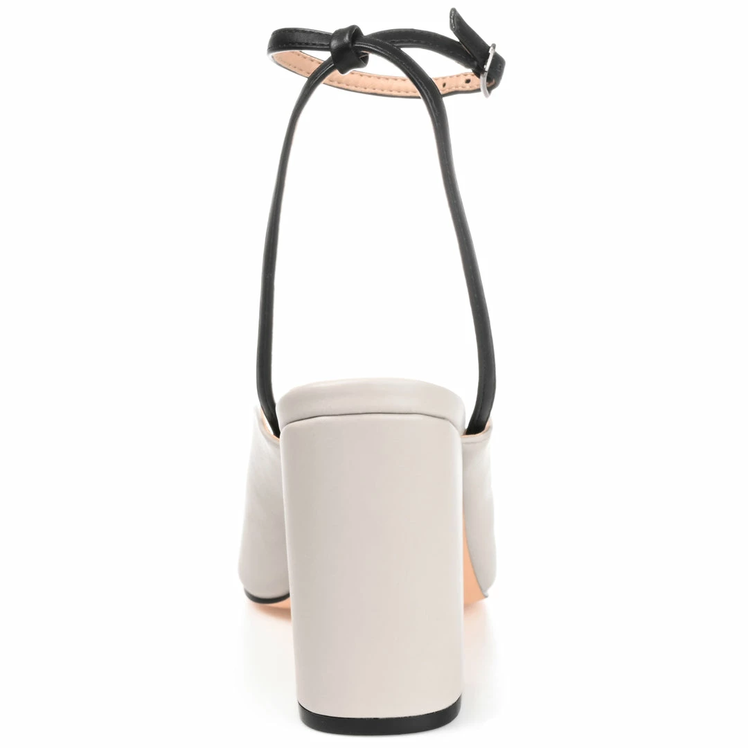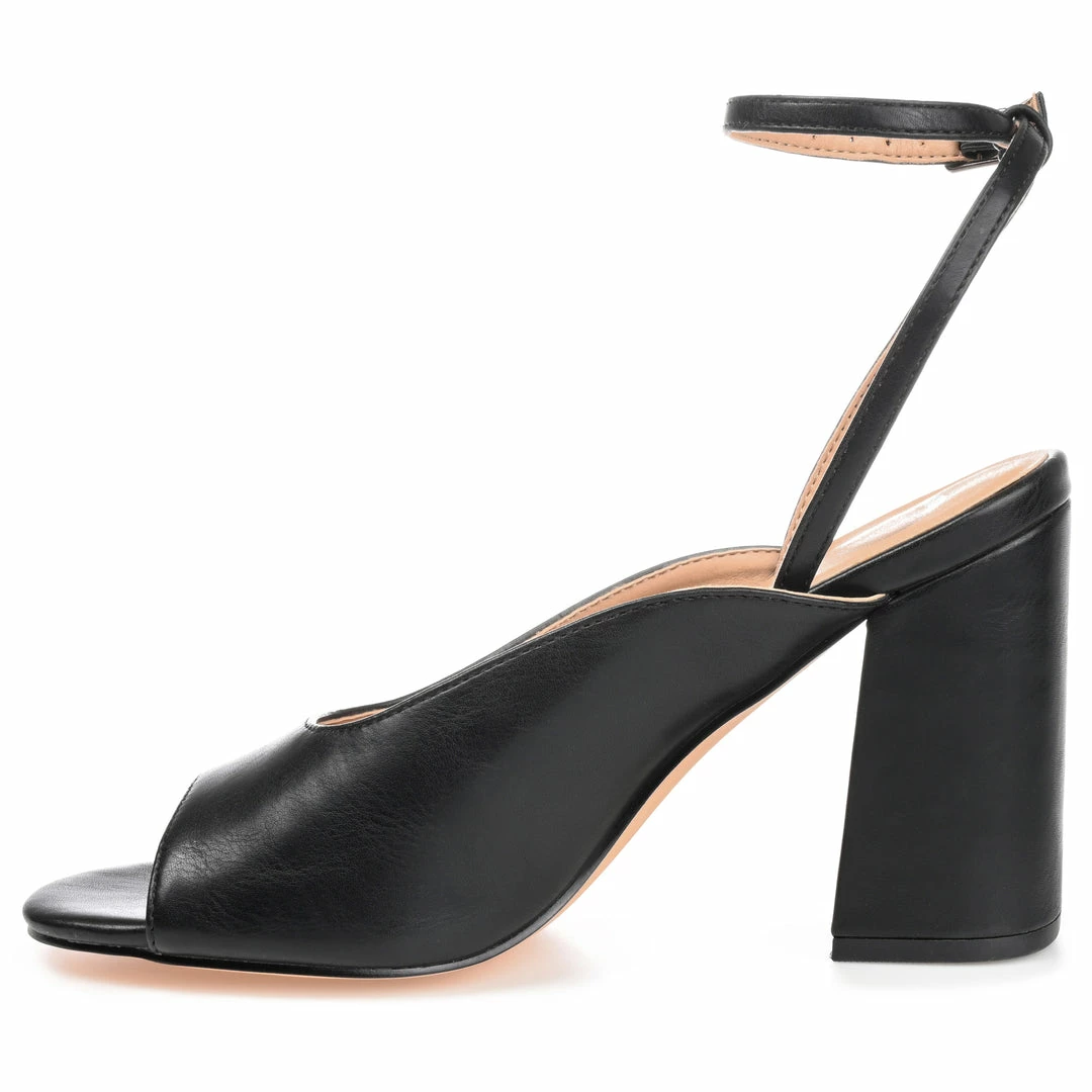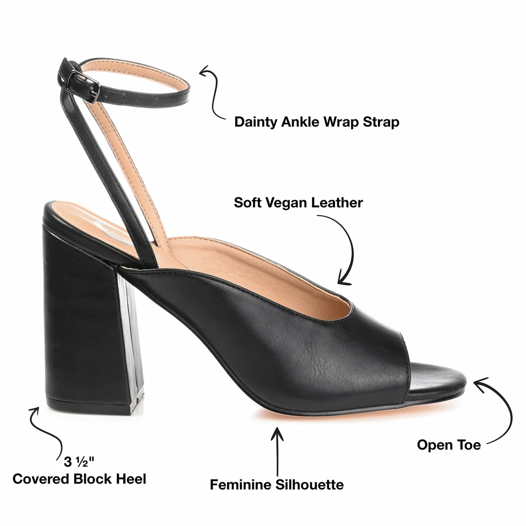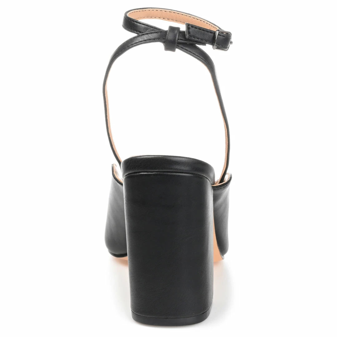 Primed for your most fabulous looks, the Calypso by Journee Collection. This pump heel is playfully detailed with a slender buckled ankle strap and a super chic covered block heel. Vegan leather uppers and a padded footbed perfect this open-toe silhouette. Heel Height – 3 1/2-inch Heel Type – Block Heel Platform Height – Flat-inch Shoe Width – Medium Closure Type – Buckle Strap Type – Ankle Toe Style – Open Lining – Faux Leather Upper Material – Vegan Leather Outersole Material – Man-made Footbed – Padded