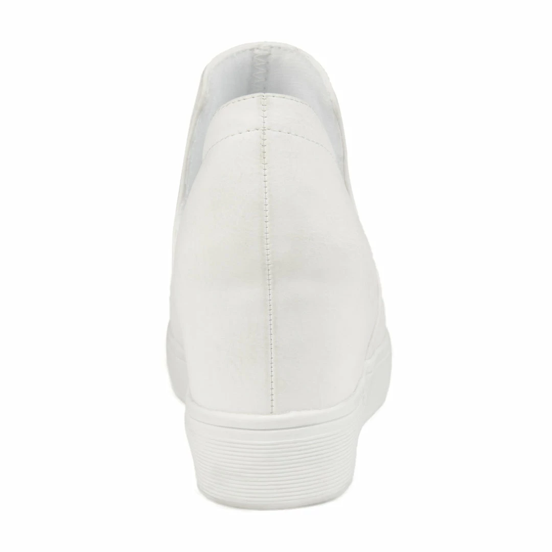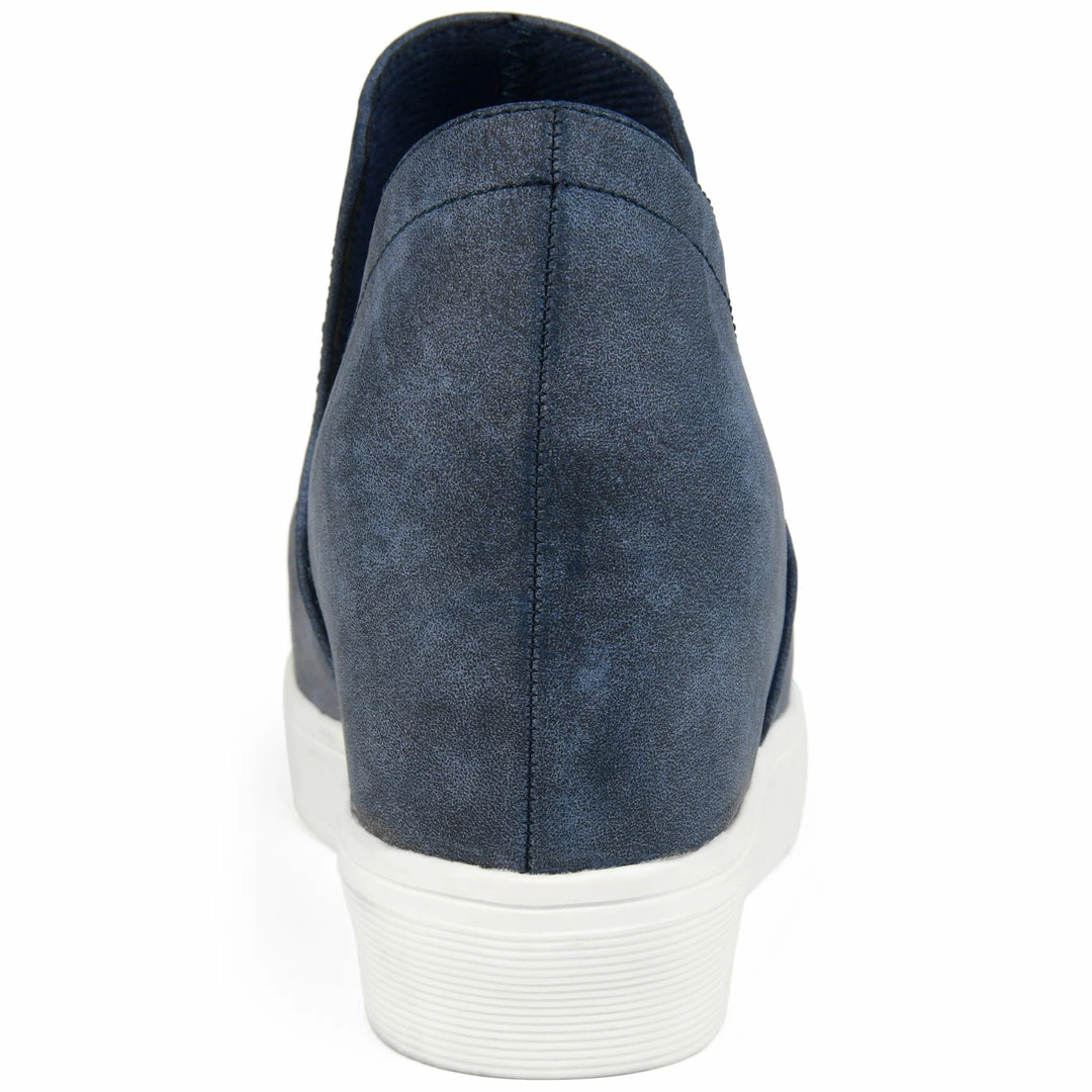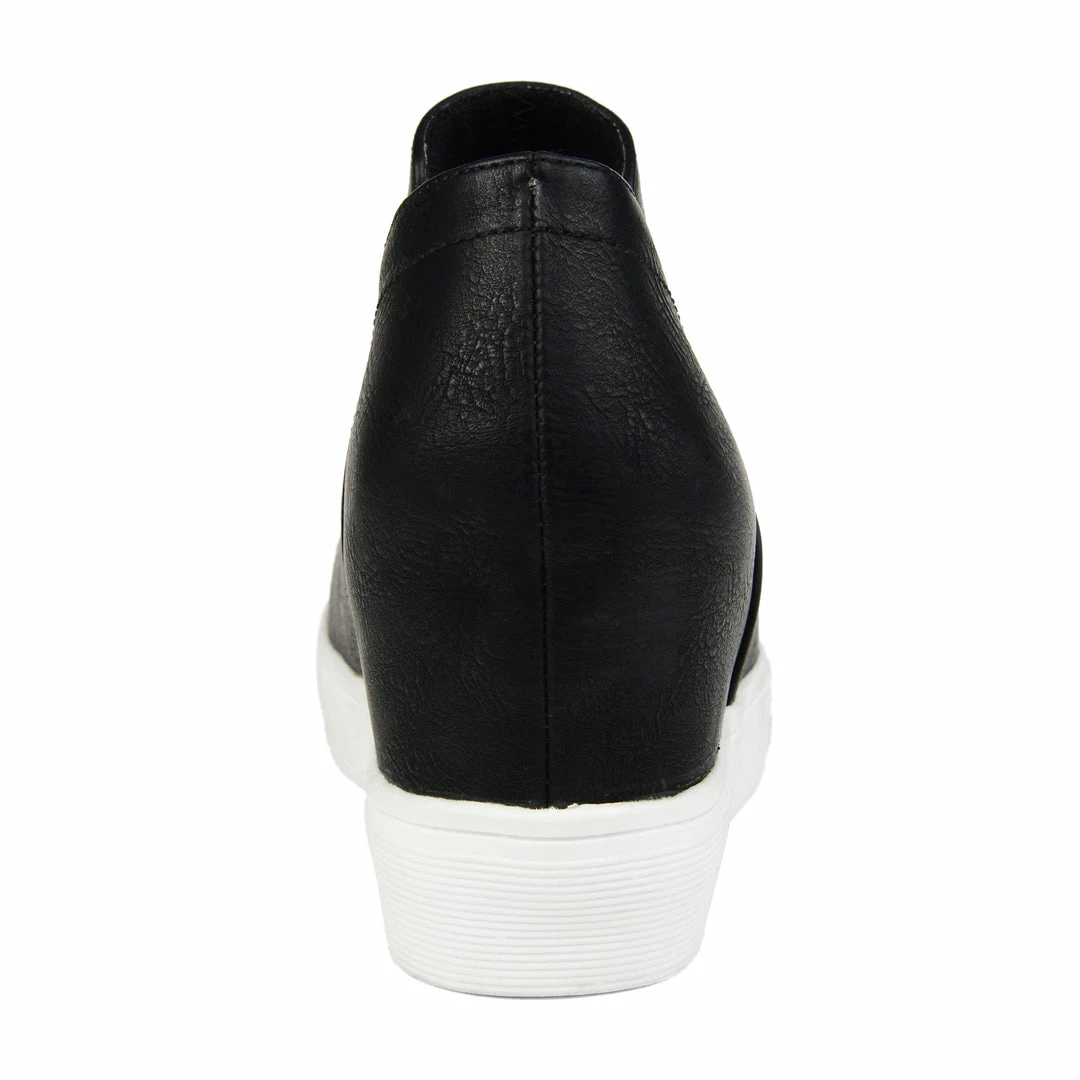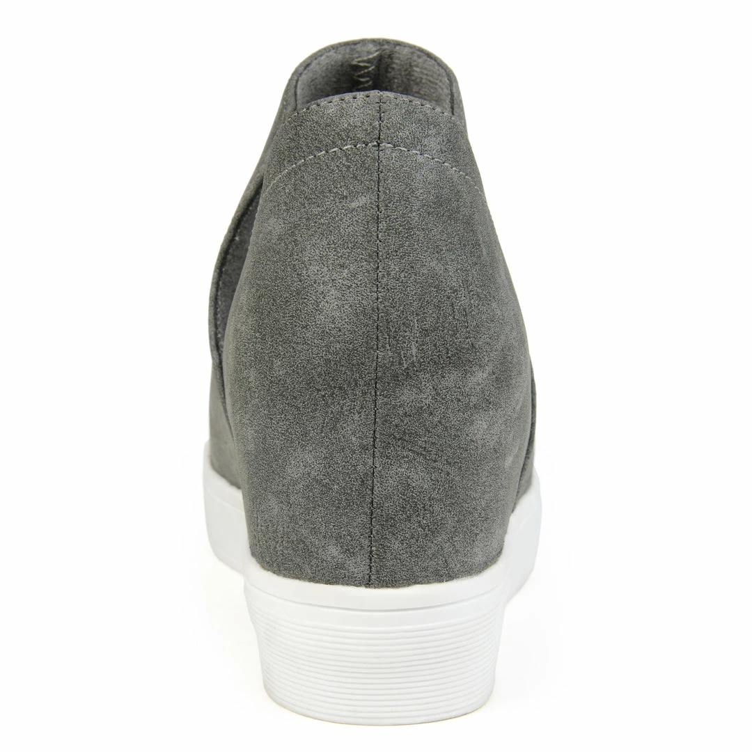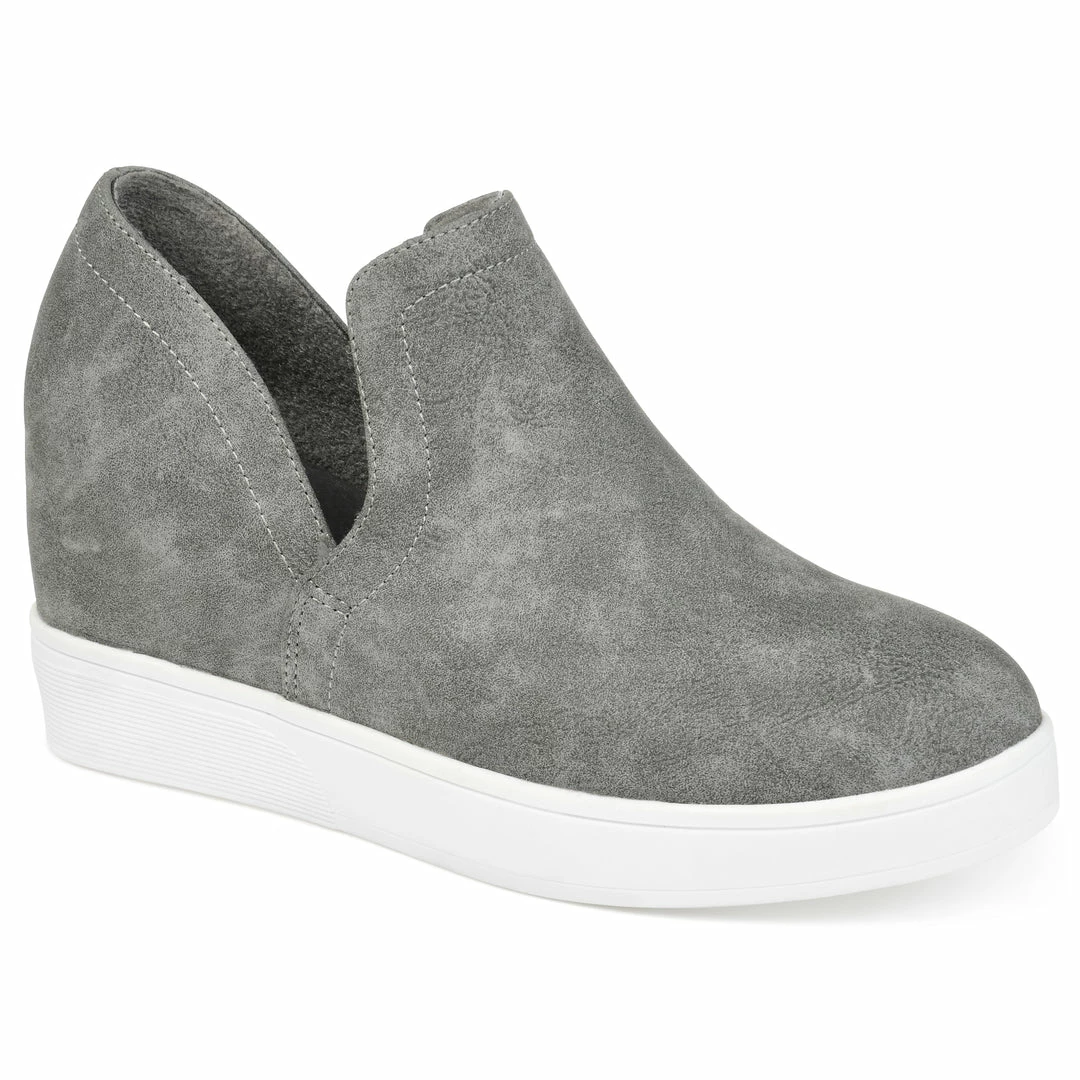 Add some freshness to your wardrobe with the Cardi sneaker by Journee Collection. This easy slip-on style shoe features a hidden wedge design with a round toe and platform bottom. The deep V side cut-outs add a unique touch and create an easy entry. Heel Height – 3-inch Heel Type – Hidden Wedge Platform Height – 1-inch Shaft Height – 3 1/2 inches Top Circumference – 11 inches Shoe Width – Medium Closure Type – Slip-on Toe Style – Round Lining – Fabric Upper Material – Faux Leather Outersole Material – Rubber Footbed – Padded
