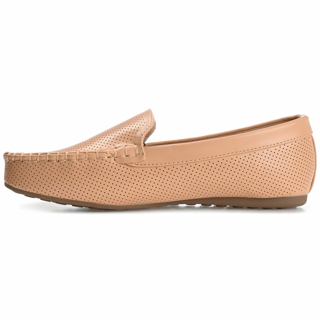 Pull on comfy style with comfort sole loafer shoes by Journee Collection. These shoes feature faux suede uppers with decorative laser-cut pinhole texture. Comfort-sole footbeds provide extra comfort and raised textured outsoles complete the design Heel Height – 1/2-inch Heel Type – Sole Platform Height – 1/2-inch Shoe Width – Medium Closure Type – Slip-on Toe Style – Round Lining – Faux Leather Upper Material – Faux Suede Outersole Material – Rubber Footbed – Comfort