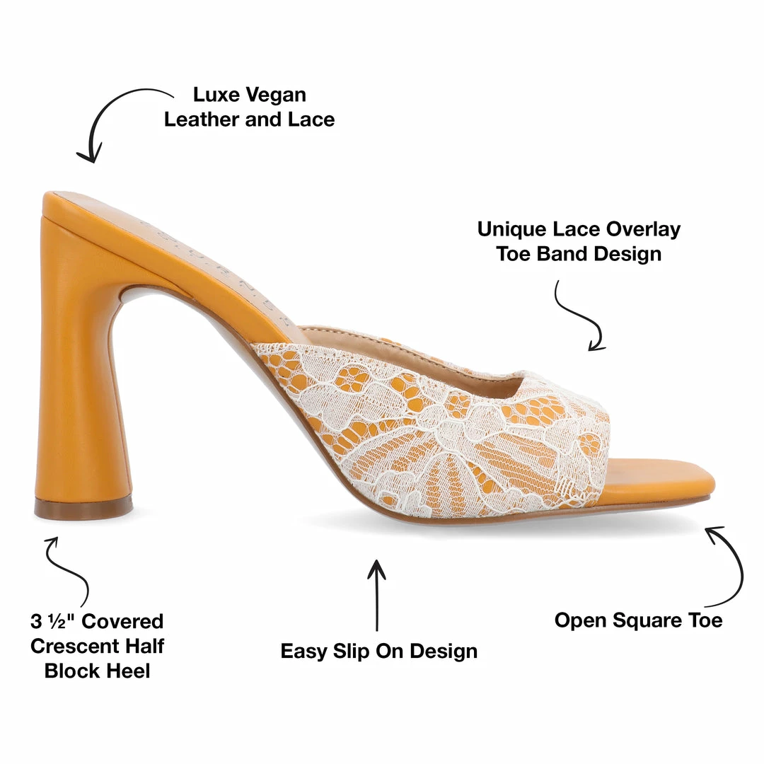Our Daivia half-block heel sandals from Journee Collection will have you rockin the streets in style. With their luxe vegan leather, lace overlay, and open square toe, you’ll get a few compliments anywhere you go. To keep it simple, their slip-on feature and padded insole will be perfect for when you’re finally ready to kick back and jump into bed. Heel Height – 3 1/2-inch Heel Type – Block Heel Platform Height – Flat-inch Shoe Width – Medium Closure Type – Slip-on Strap Type – Single Band Toe Style – Open Lining – Faux Leather Upper Material – Vegan Leather Outersole Material – Man-made Footbed – Padded