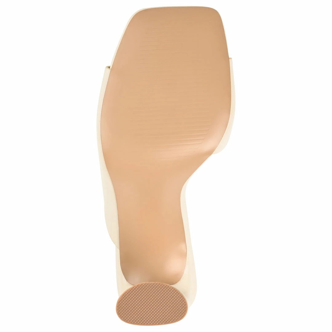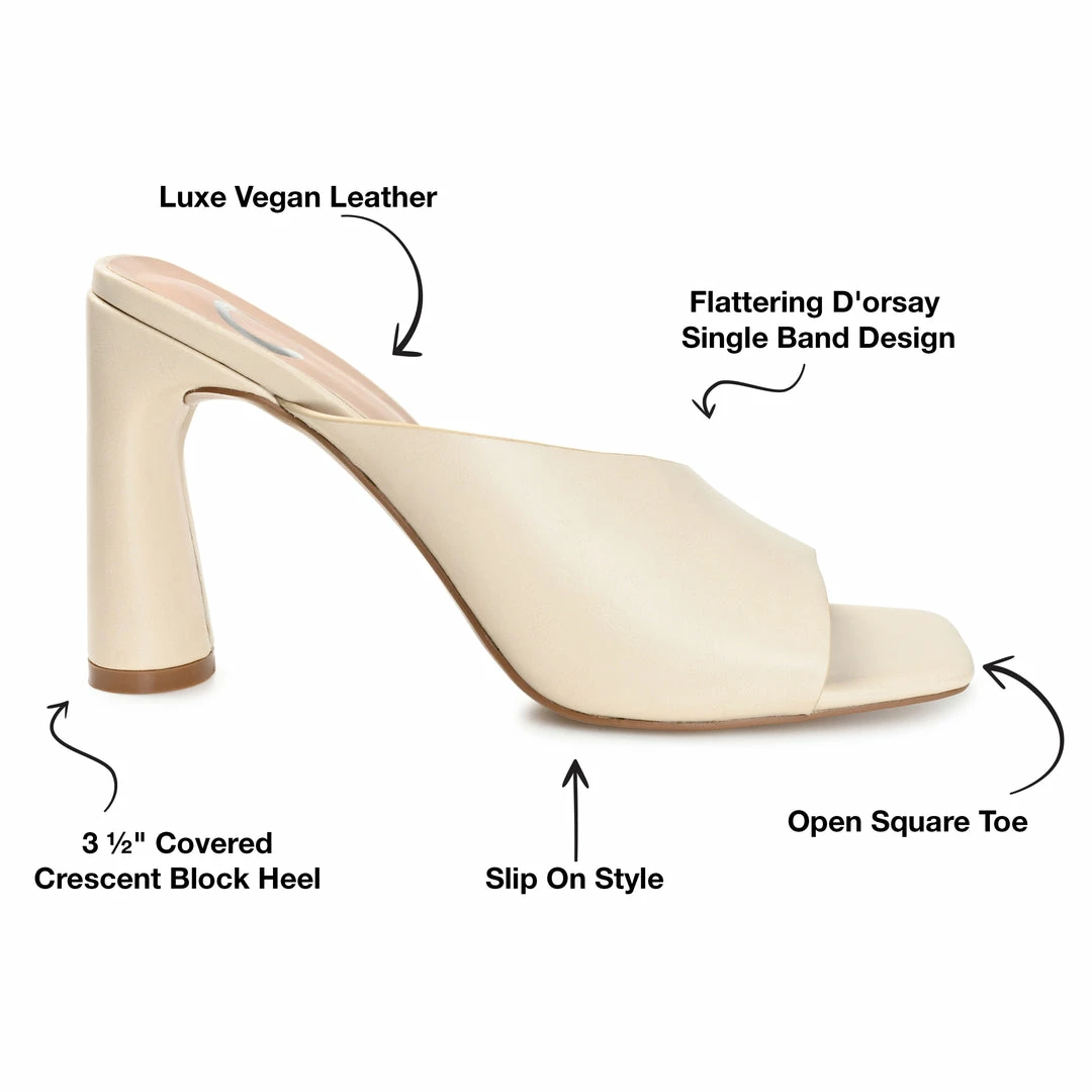 Dress it up or dress it down; the Dola by Journee Collection goes with everything. This simply chic style features a padded footbed and soft vegan leather for all-day comfort. A crescent heel and an asymmetrical strap perfect this modern look. Heel Height – 3 1/2-inch Heel Type – Block Heel Platform Height – Flat-inch Shoe Width – Medium Closure Type – Slip-on Strap Type – Toe Strap Toe Style – Open Lining – Faux Leather Upper Material – Vegan Leather Outersole Material – Man-made Footbed – Padded
