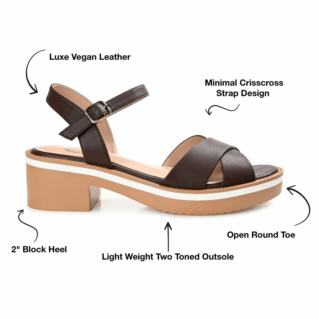 The heeled sandal you’ll want to wear every day, the Hilaree by Journee Collection. This summery style features a lightweight block heel and padded insole for comfort and ease. The styling is perfected with crisscross straps and a white stripe around the sole. Heel Height – 2-inch Heel Type – Block Heel Platform Height – 1-inch Shoe Width – Medium Closure Type – Buckle Strap Type – Ankle Toe Style – Open Lining – Faux Leather Upper Material – Vegan Leather Outersole Material – Man-made Footbed – Padded