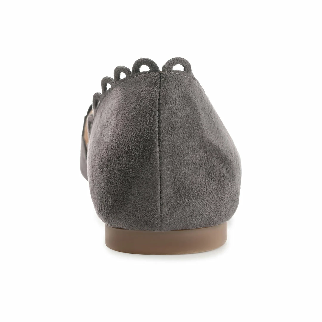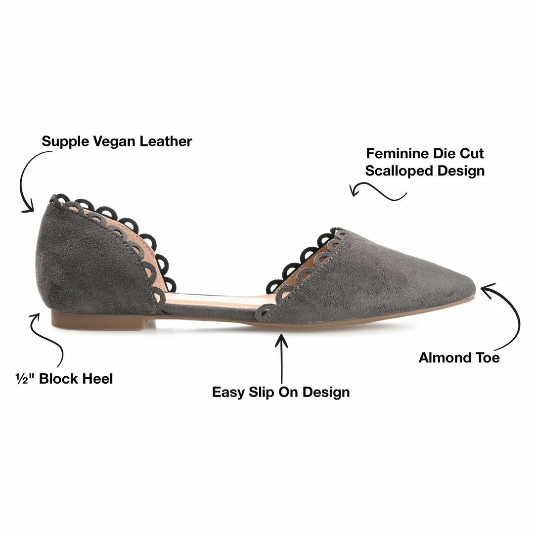 The Jezlin flat by Journee Collection features a lovely scalloped cut-out edge, and a faux suede material. The flattering pointed toe and breezy cut-outs come together to create a comfortable, all-day wear shoe. Heel Height – 1/2-inch Heel Type – Block Heel Platform Height – Flat-inch Shoe Width – Medium Closure Type – Slip-on Strap Type – Ankle Cuff Toe Style – Almond Lining – Faux Leather Upper Material – Faux Suede Outersole Material – Man-made Footbed – Padded