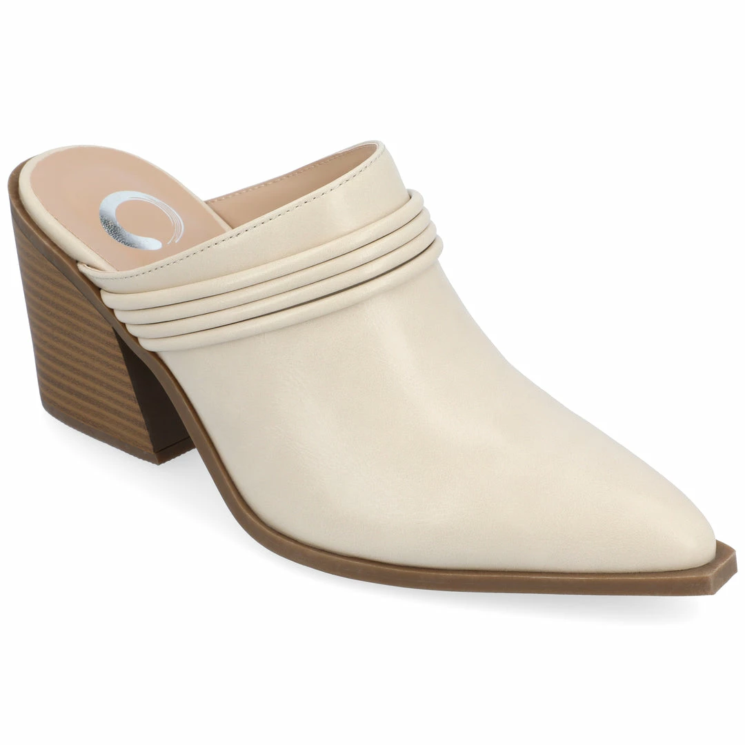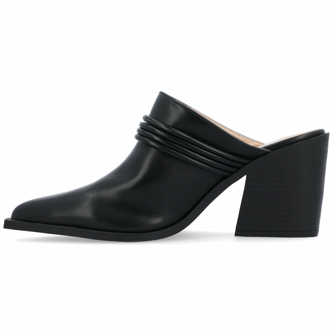 Slip-on a chic look this fall with the Jinny heel by Journee Collection. This pointed-toe mule features vegan leather topped with a braided detail for a sophisticated look. A padded insole and stacked block heel ground the look for a comfortable lift. At Journee Collection, our pump styles will let you go from a fun night out with the girls to kicking back and relaxing at the end of the night without any trouble. Heel Height – 3-inch Heel Type – Stacked Platform Height – Flat-inch Shoe Width – Medium Closure Type – Slip-on Toe Style – Pointed Lining – Fabric Upper Material – Vegan Leather Outersole Material – Man-made Footbed – Padded