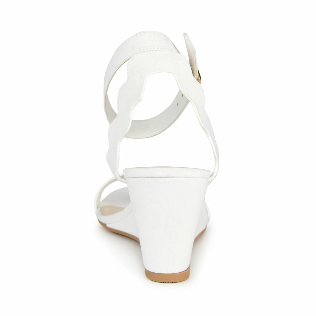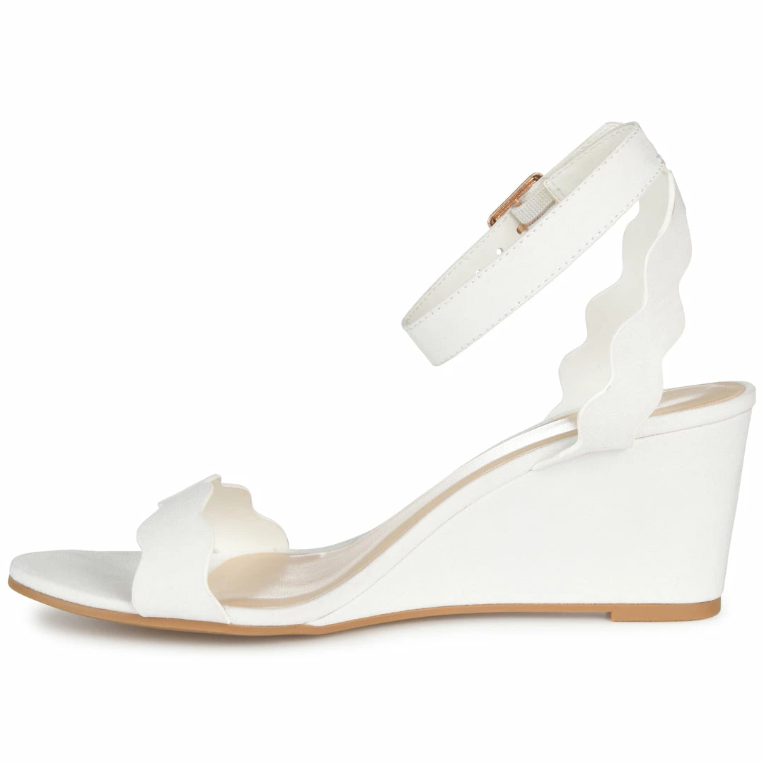 Make an entrance in the Loucia by Journee Collection. This vegan leather toe strap sandal is trimmed with scalloped details for a retro vibe. A covered wedge heel lined with a padded footbed and a buckled ankle strap finish this sassy look. Heel Height – 3-inch Heel Type – Wedge Platform Height – Flat-inch Shoe Width – Medium Closure Type – Buckle Strap Type – Ankle Toe Style – Open Lining – Faux Leather Upper Material – Vegan Leather Outersole Material – Man-made Footbed – Padded