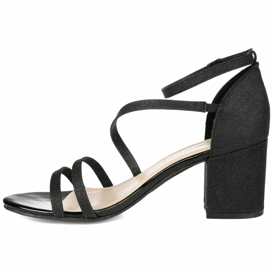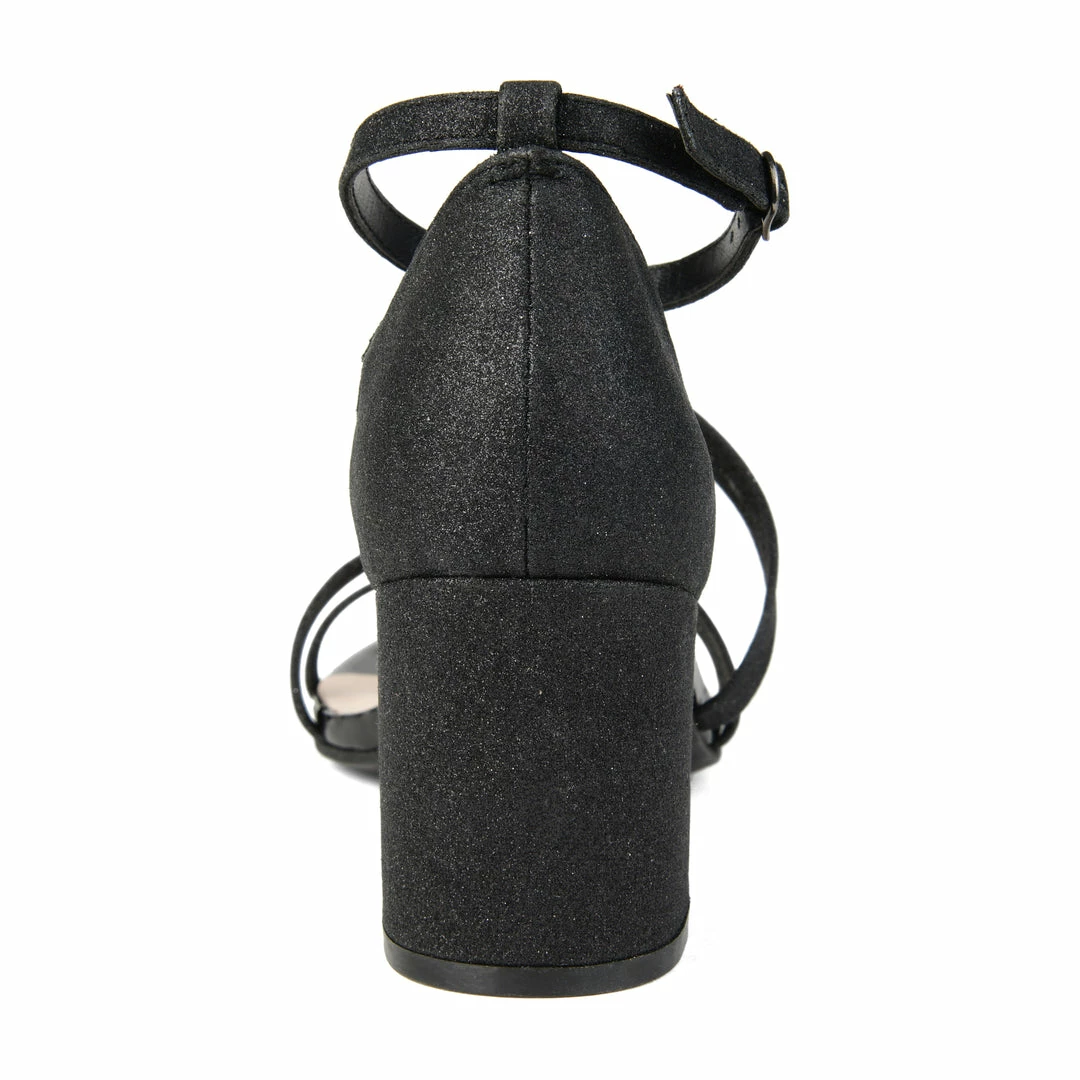 Step into a beautifully jaw dropping design with the Bella pump by Journee Collection. This dress pump features a thick block, an intoxicating glitter material, and a double toe strap. We love the straps on this pump whether they are on the toe or gliding up the foot to an ankle strap. This pump has the perfect height to wear them all night long without any fuss! Also available in Wide Width Heel Height – 2 1/2-inch Heel Type – Block Heel Platform Height – 1/2-inch Shoe Width – Wide Closure Type – Buckle Toe Style – Open Lining – Fabric Upper Material – Man-made Outersole Material – Man-made Footbed – Padded