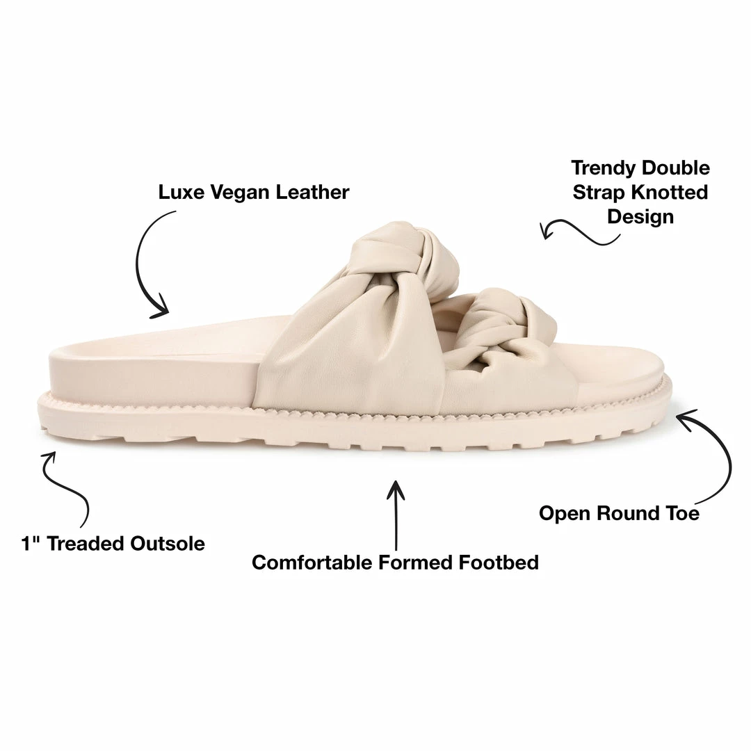 You’ll look oh-so-cool at the pool or beach Melanie by Journee Collection. With a comfy padded footbed and soft vegan leather, this sporty slide fits like a dream. Puffed straps with knot details top the look. Heel Height – 1-inch Heel Type – Sole Platform Height – 1/2-inch Shoe Width – Medium Closure Type – Slip-on Strap Type – Multi -Strap Toe Style – Open Lining – Faux Leather Upper Material – Vegan Leather Outersole Material – Man-made Footbed – Padded