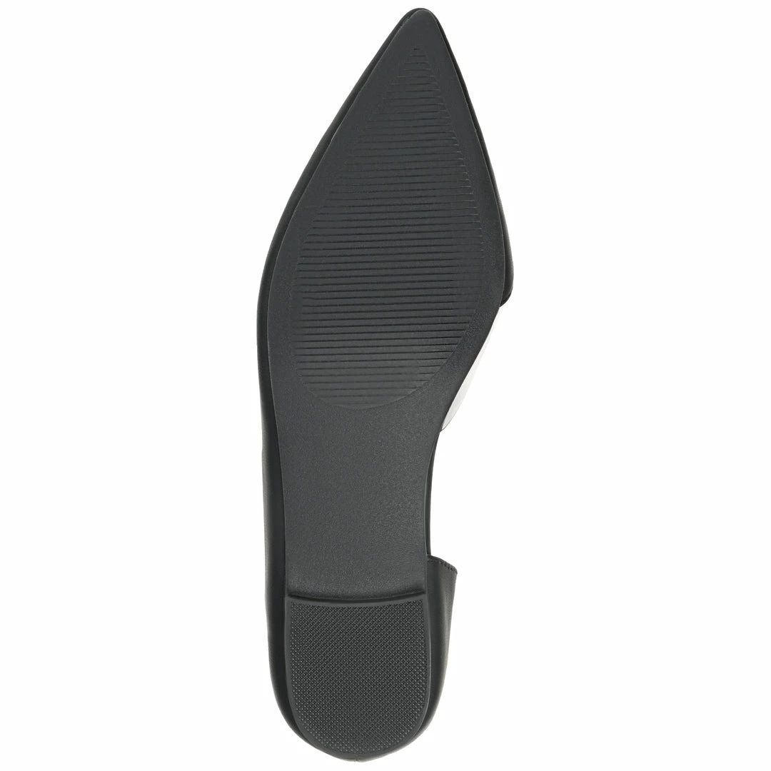 A clear choice for the upcoming season, the Mikki flat by Journee Collection. This classic d’Orsay flat features a bold pointed-toe and clear vinyl trim for a modern look. Soft vegan leather, a padded footbed, and a cutout at the side finish the look. Heel Height – 1/2-inch Heel Type – Block Heel Platform Height – Flat-inch Shoe Width – Medium Closure Type – Slip-on Toe Style – Pointed Lining – Faux Leather Upper Material – Vegan Leather Outersole Material – Man-made Footbed – Padded