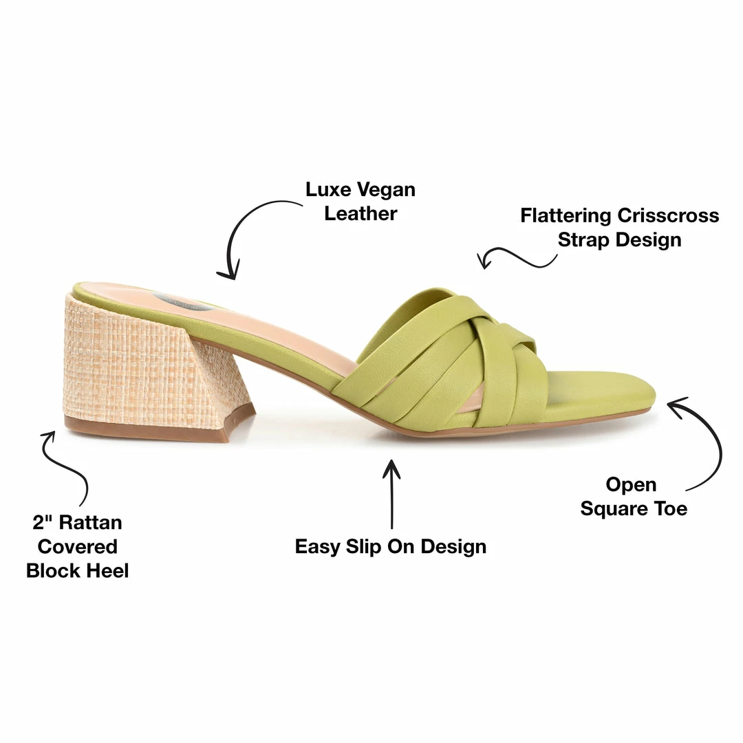 Slip-on a sassy look with the Moree by Journee Collection. This easy heel features a multi-strap design at the vamp rendered with vegan leather. A block heel with rattan details and a padded footbed complete this chic look. Heel Height – 2-inch Heel Type – Block Heel Platform Height – Flat-inch Shoe Width – Medium Closure Type – Slip-on Strap Type – Multi -Strap Toe Style – Open Lining – Faux Leather Upper Material – Vegan Leather Outersole Material – Man-made Footbed – Padded