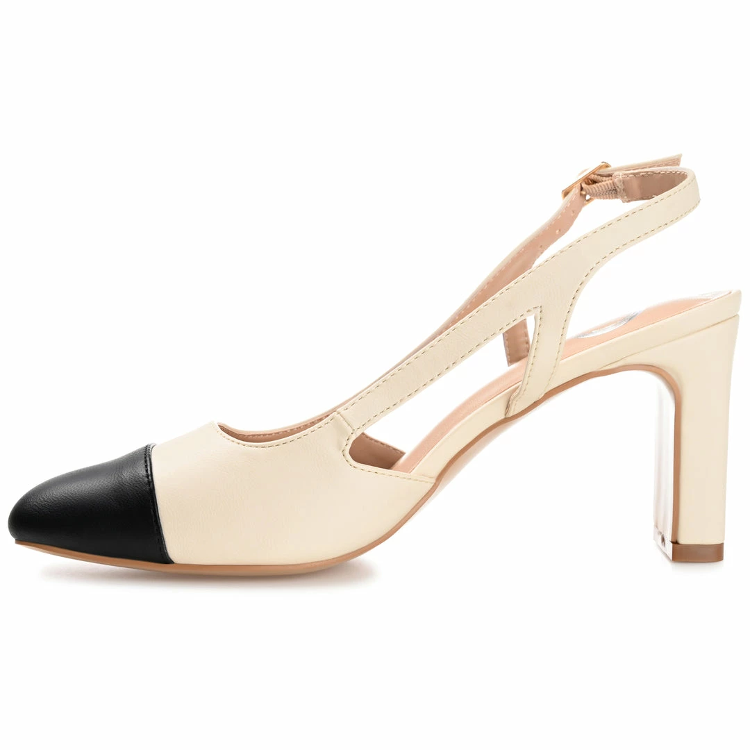 The Reignn pumps by Journee Collection look like they came straight off the runway and into your closet. This cap-toed cutie features luxe vegan leather uppers, a soft padded footbed, and a sling-back strap for a great look and feel. A covered half-block heel adds a leg-lengthening lift. Heel Height – 3-inch Heel Type – Block Heel Platform Height – Flat-inch Shoe Width – Medium Closure Type – Buckle Strap Type – Ankle Toe Style – Almond Lining – Faux Leather Upper Material – Vegan Leather Outersole Material – Man-made Footbed – Padded