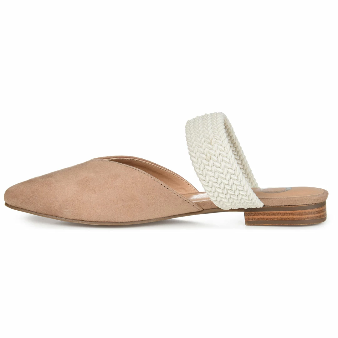 Look and feel your best in this everyday flat by Journee Collection. The Roxeene is a slip-on mule with man-made two-tone details and a sweetheart topline. A braided band at the vamp adds the perfect amount of texture, and a padded footbed provides a comfortable fit. Heel Height – 1-inch Heel Type – Block Heel Platform Height – Flat-inch Shoe Width – Medium Closure Type – Slip-on Toe Style – Pointed Lining – Faux Leather Upper Material – Vegan Leather Outersole Material – Man-made Footbed – Padded