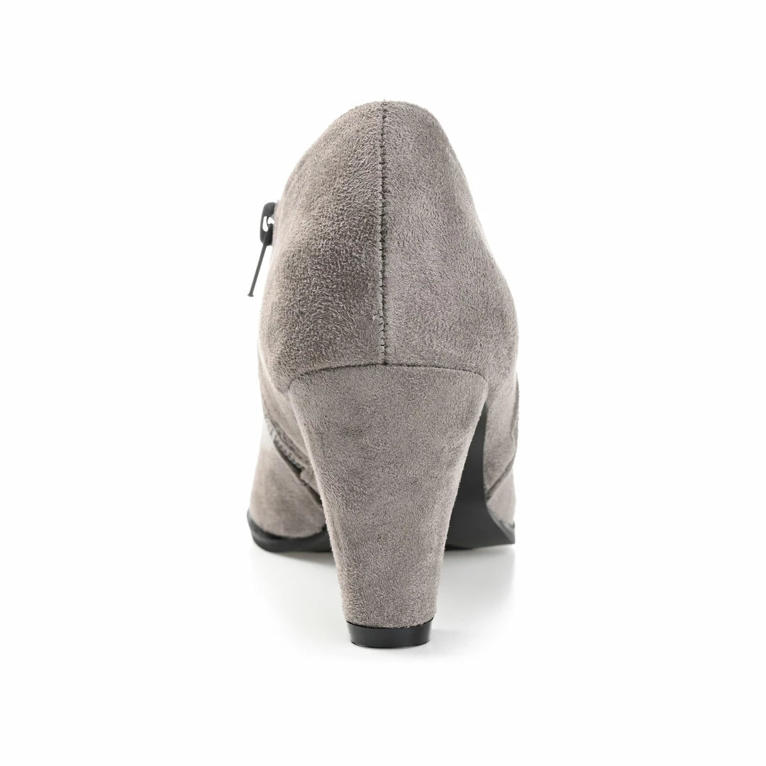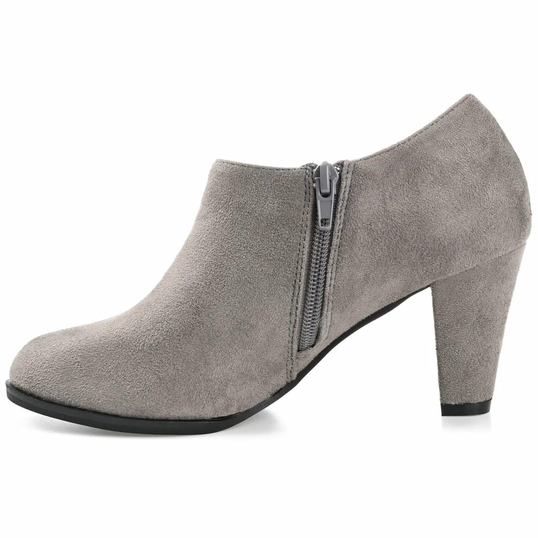 Step into trend-setting style with these low-cut ankle booties from Journee Collection. This pair of stylish shoes features faux suede uppers with two zippers on the side and a chic almond toe. A padded comfort-sole and chunky heel provides all-day wear. Heel Height – 3-inch Heel Type – Block Heel Platform Height – 1/2-inch Shaft Height – 4 inches Top Circumference – 10 inches Shoe Width – Medium Closure Type – Inside Zip Toe Style – Almond Lining – Faux Leather Upper Material – Faux Suede Outersole Material – Faux Suede over Synthetic Footbed – Comfort