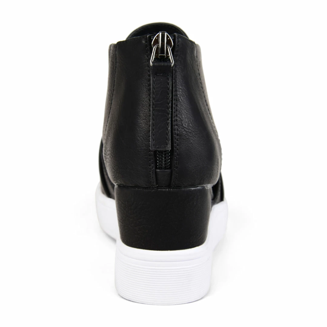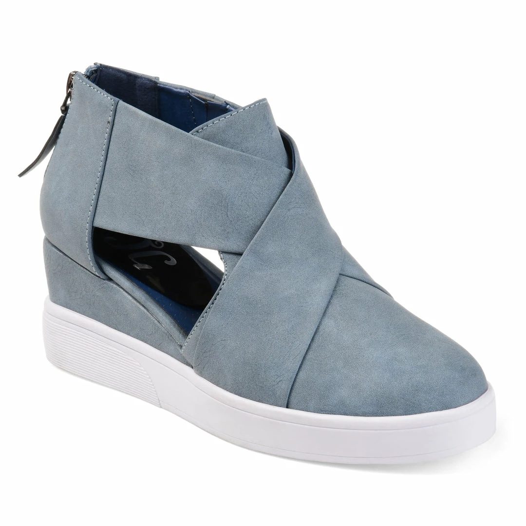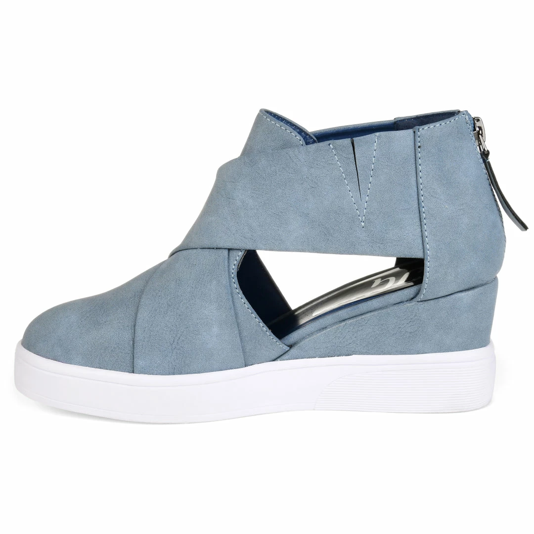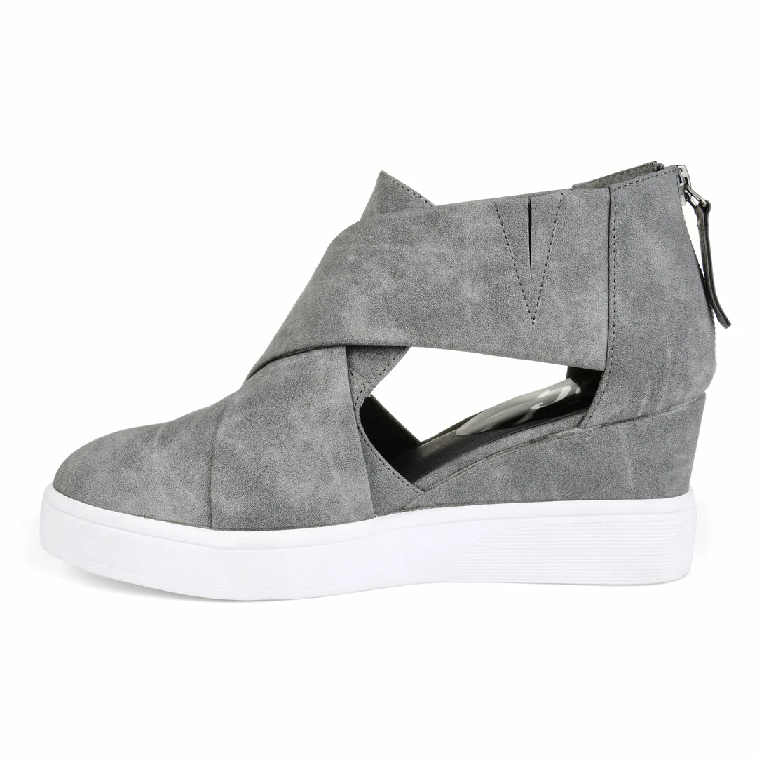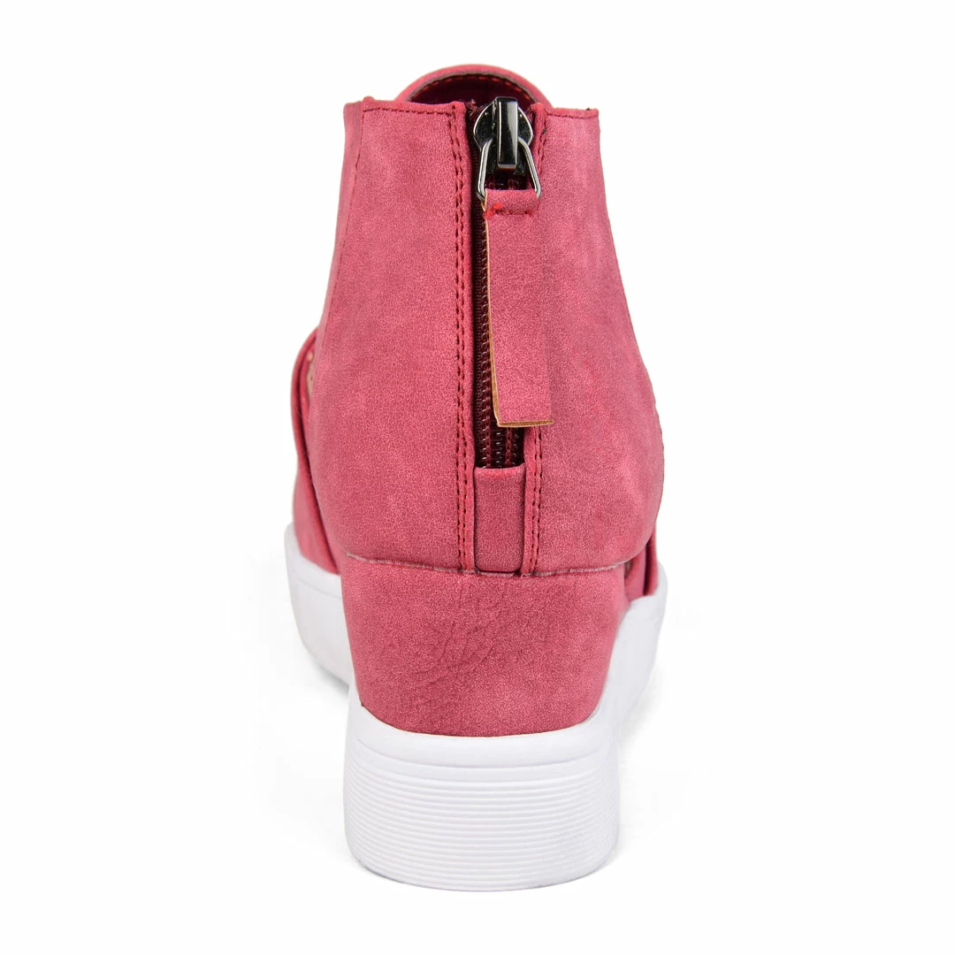 Look effortlessly cool in fashion sneakers from Journee Collection. Soft faux leather uppers display a crisscross design on the vamps and stylish D’Orsay cut-outs at the sides. Thick outsoles and wedge heels create stylish lift to finish the look Heel Height – 2 1/2-inch Heel Type – Wedge Platform Height – 1-inch Shoe Width – Medium Closure Type – Back Heel Zip Toe Style – Round Lining – Faux Leather Upper Material – Faux Leather Outersole Material – Man-made Footbed – Padded