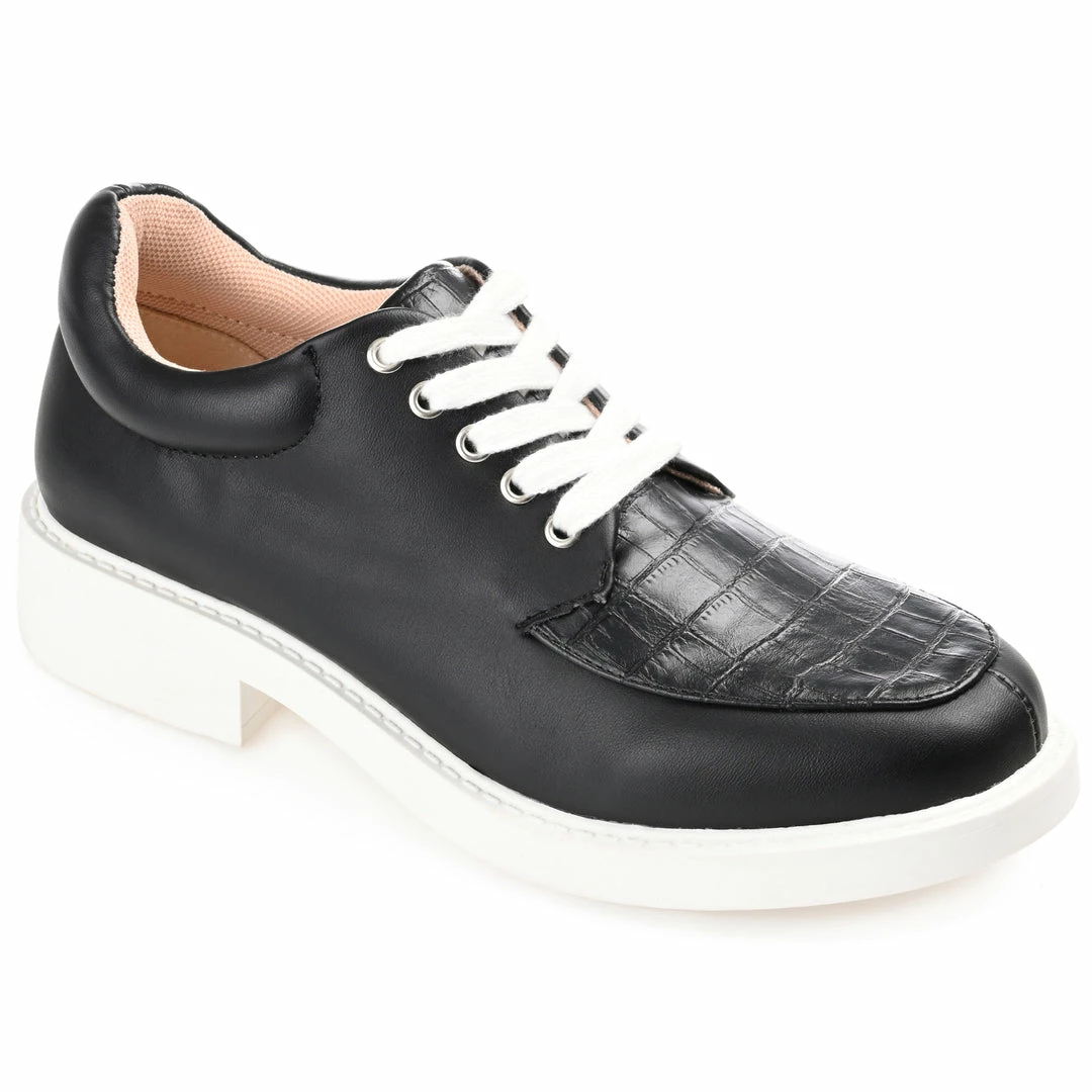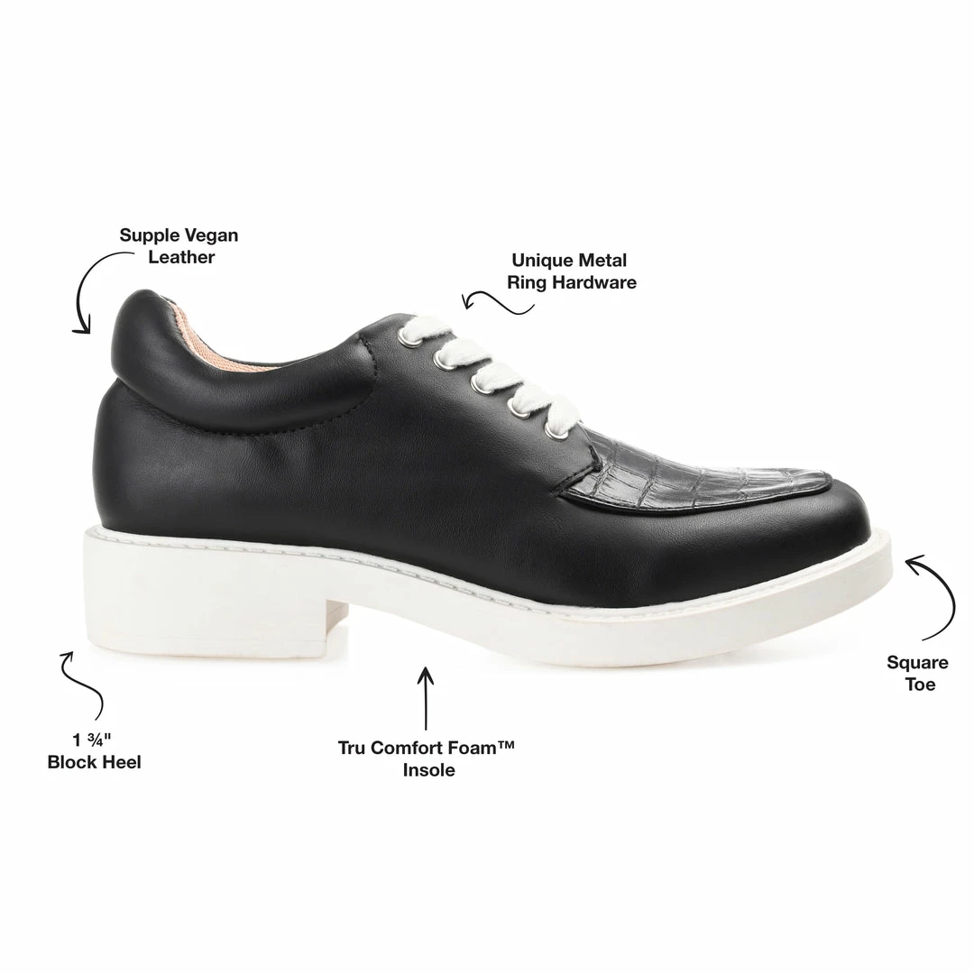 You’ll love pairing the Aliah oxfords by Journee Collection with just about everything in your closet. This lace-up design is effortlessly cool with vegan leather uppers and a croc textured accent at the vamp. A supportive 4 mm Tru Comfort Foamβ’ footbed and a white block heel finish this round-toe silhouette. Heel Height – 1 3/4-inch Heel Type – Block Heel Platform Height – 1-inch Shoe Width – Medium Closure Type – Lace-up Toe Style – Round Lining – Fabric Upper Material – Vegan Leather Outersole Material – Man-made Footbed – 4 MM Tru Comfort Foamβ’