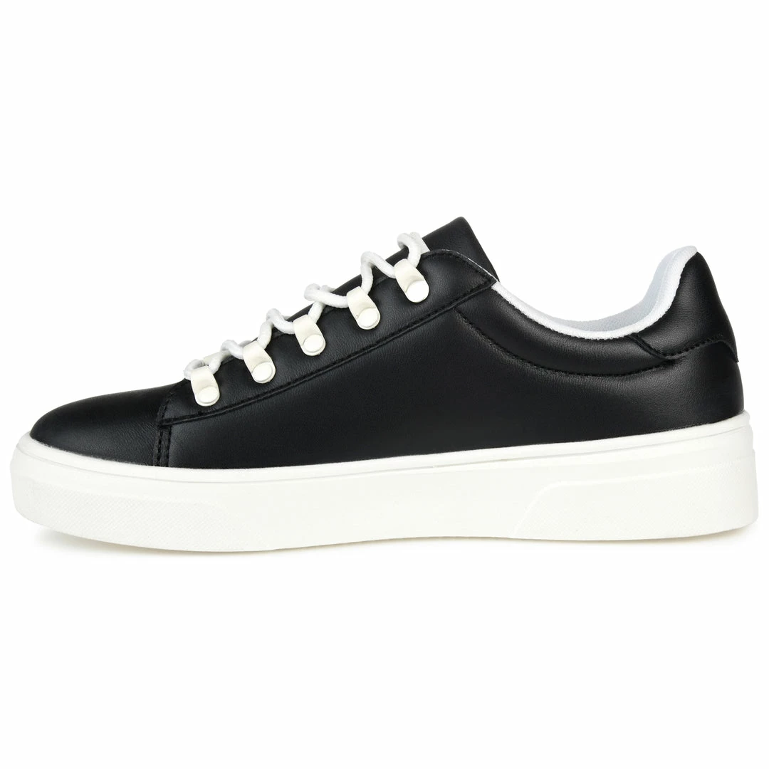 Sporty hardware paired with a lace-up closure fiercely styles this essential sneaker. The Arden by Journee Collection is a round-toe design embellished with a zipper accent at the side and two-tone details. Soft vegan leather uppers and a rubber sole lined with a 4 mm Tru Comfort Foam™ footbed complete the look for a supportive finish. Heel Height – 1 1/2-inch Heel Type – Sole Platform Height – 1-inch Shoe Width – Medium Closure Type – Lace-up Toe Style – Round Lining – Fabric Upper Material – Vegan Leather Outersole Material – Man-made Footbed – 4 MM Tru Comfort Foam™