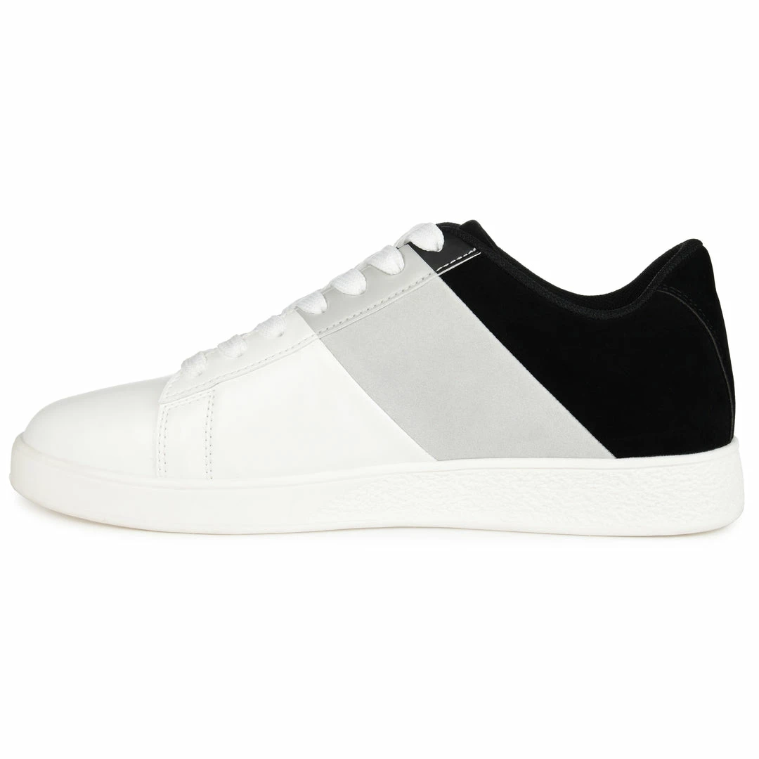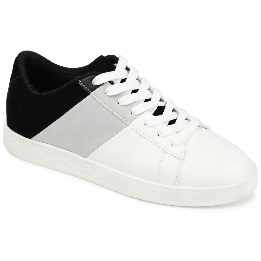 Make your day just a little bit brighter when you sport the Auburn by Journee Collection. This vegan leather sneaker features a colorful applique detail for a retro touch. A classic lace-up closure and a 4 mm Tru Comfort Foamโข insole perfect this everyday look. Heel Height – 1-inch Heel Type – Sole Platform Height – 1/2-inch Shoe Width – Medium Closure Type – Lace-up Toe Style – Round Lining – Fabric Upper Material – Vegan Leather Outersole Material – Man-made Footbed – 4 MM Tru Comfort Foamโข
