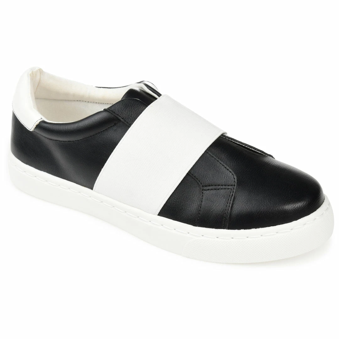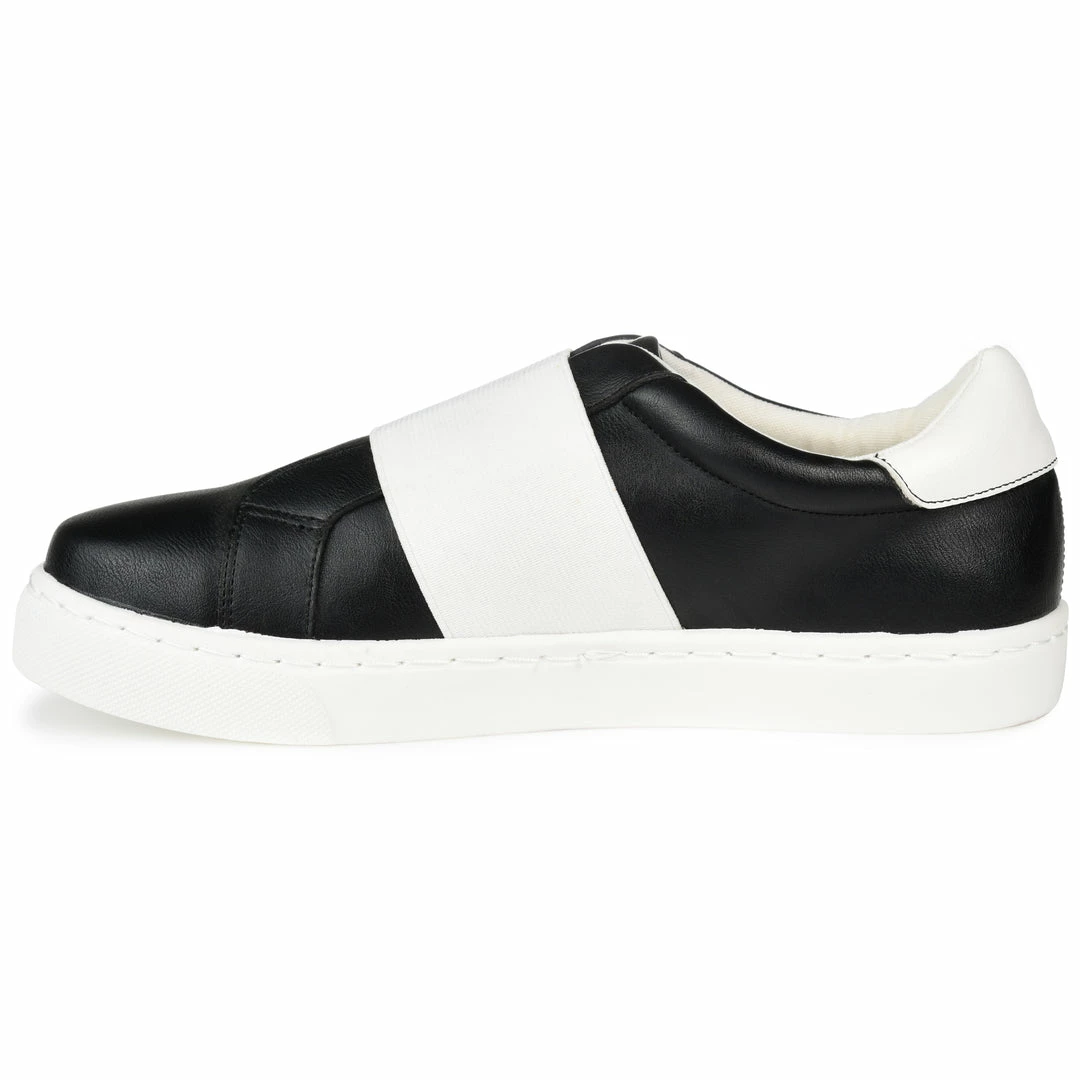 Trade out your tired sneakers for a pair of modern kicks by Journee Collection. The Billie is detailed with a padded ankle and a bold elastic accent for a flexible fit. This vegan leather slip-on design will boost your look with its thick rubber sole, and keep you on your feet with ease with its 6 mm Tru Comfort Foamโข footbed. Heel Height – 1-inch Heel Type – Sole Platform Height – 1-inch Shoe Width – Medium Closure Type – Slip-on Toe Style – Round Lining – Fabric Upper Material – Vegan Leather Outersole Material – Rubber Footbed – 6 MM Tru Comfort Foamโข