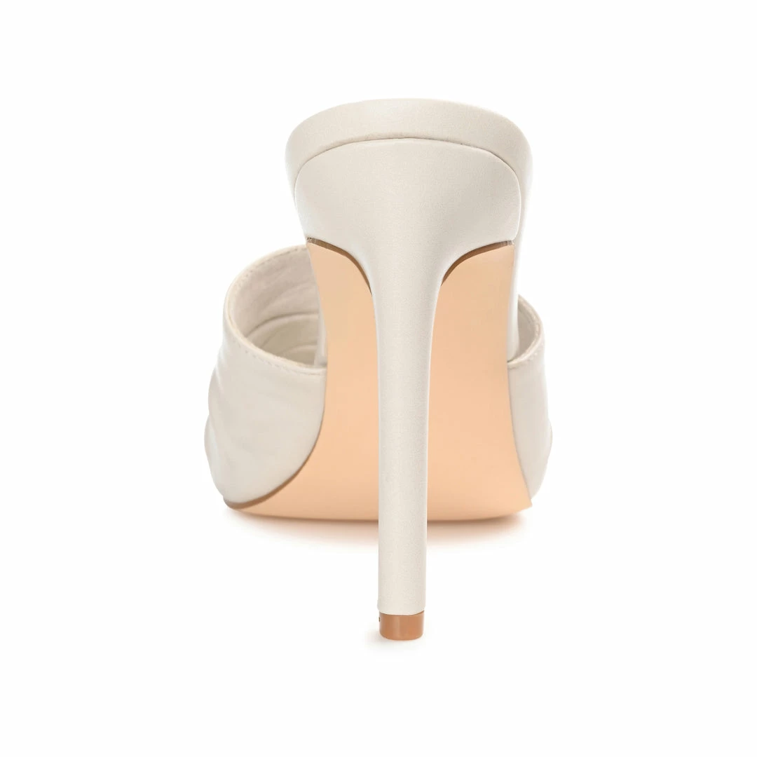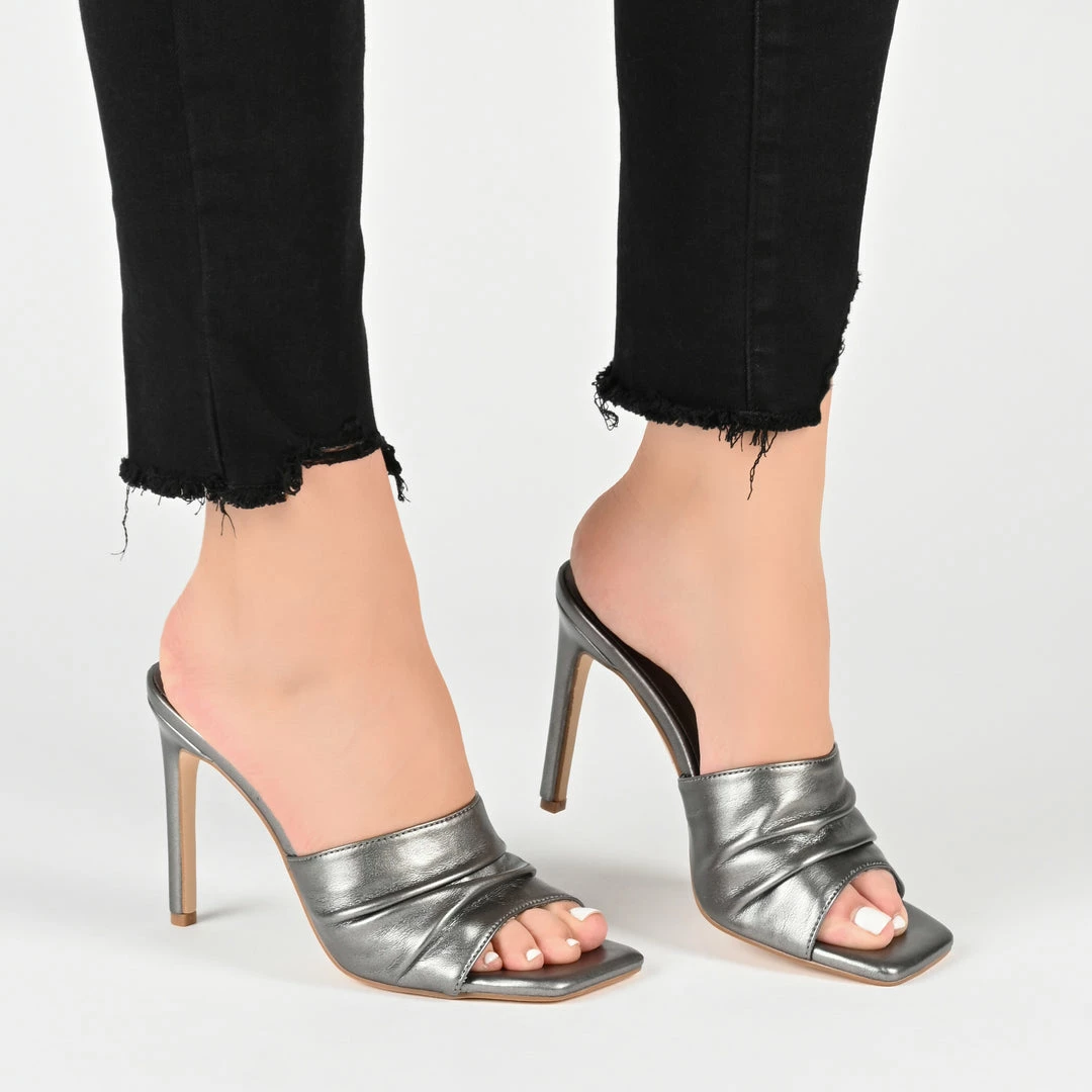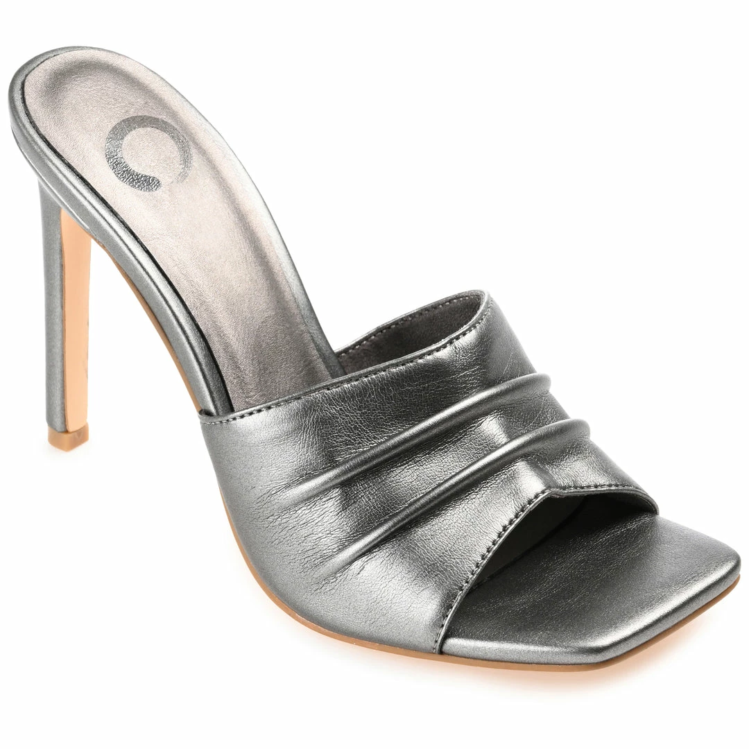 An attention-getting style you’ll want to wear every day, the Camber by Journee Collection. This slip-on heel features vegan leather uppers detailed with ruching and an open toe. A super supportive 4 mm Tru Comfort Foamβ’ footbed finishes the design for a comfortable but elevated fit. Heel Height – 4-inch Heel Type – Stiletto Platform Height – Flat-inch Shoe Width – Medium Closure Type – Slip-on Strap Type – Single Band Toe Style – Open Lining – Faux Leather Upper Material – Vegan Leather Outersole Material – Man-made Footbed – 4 MM Tru Comfort Foamβ’