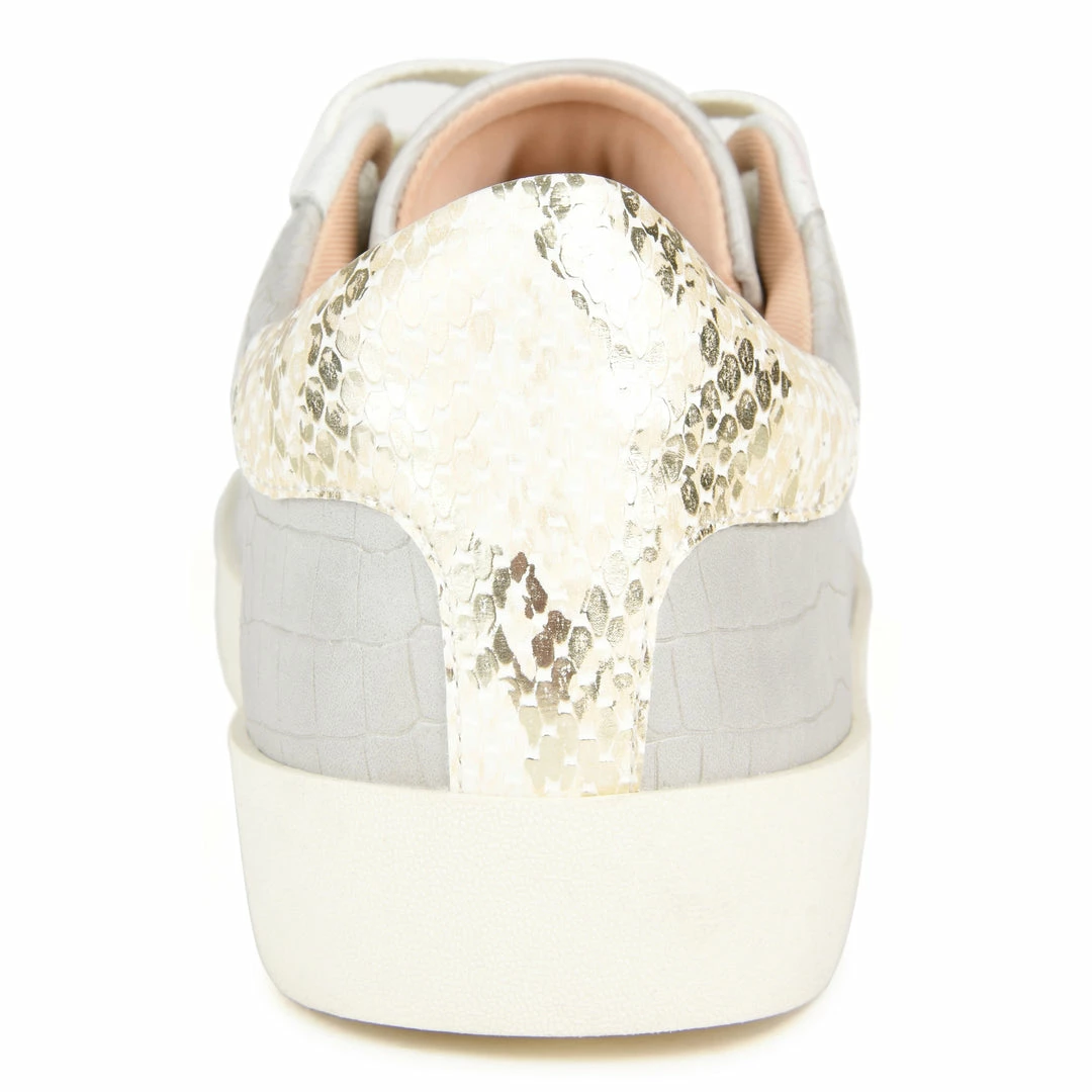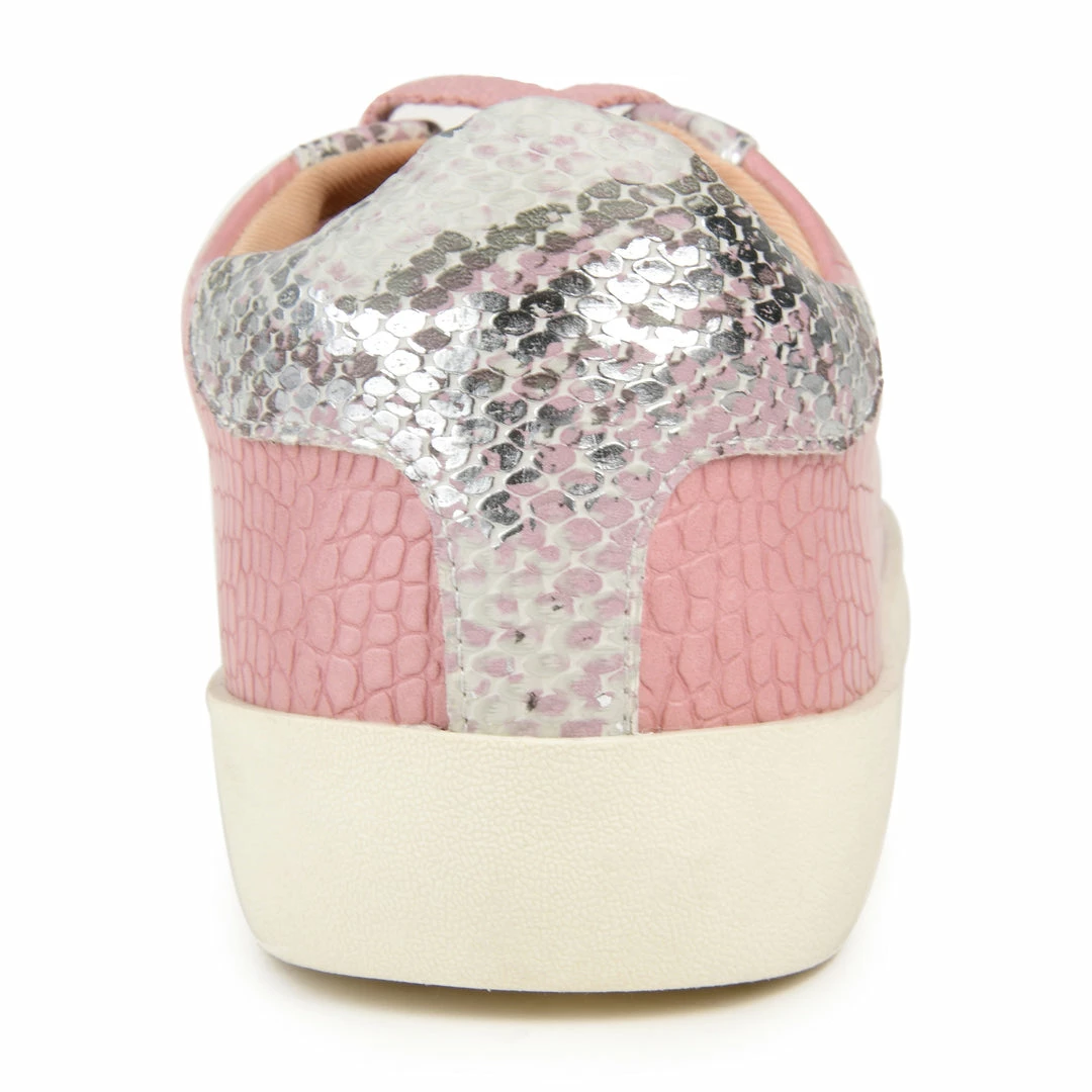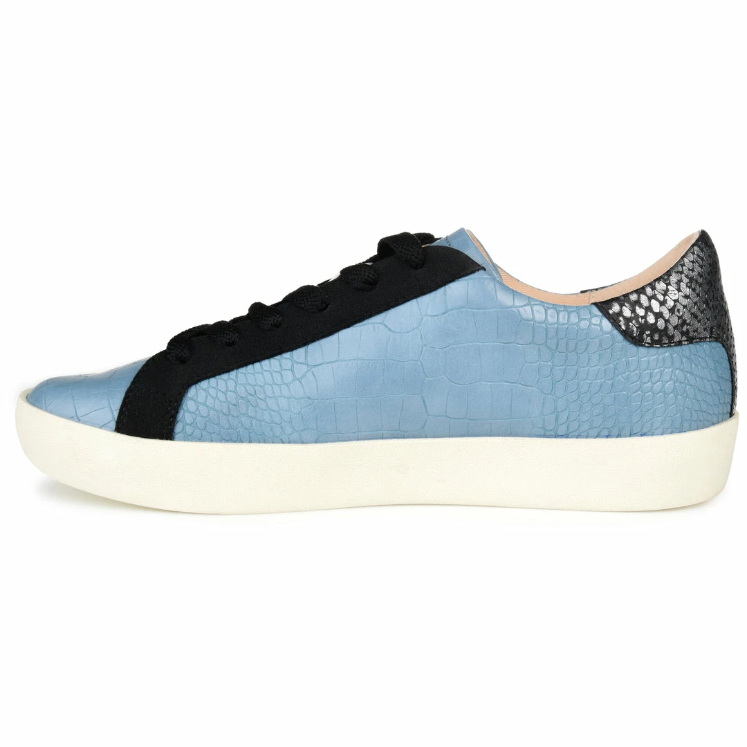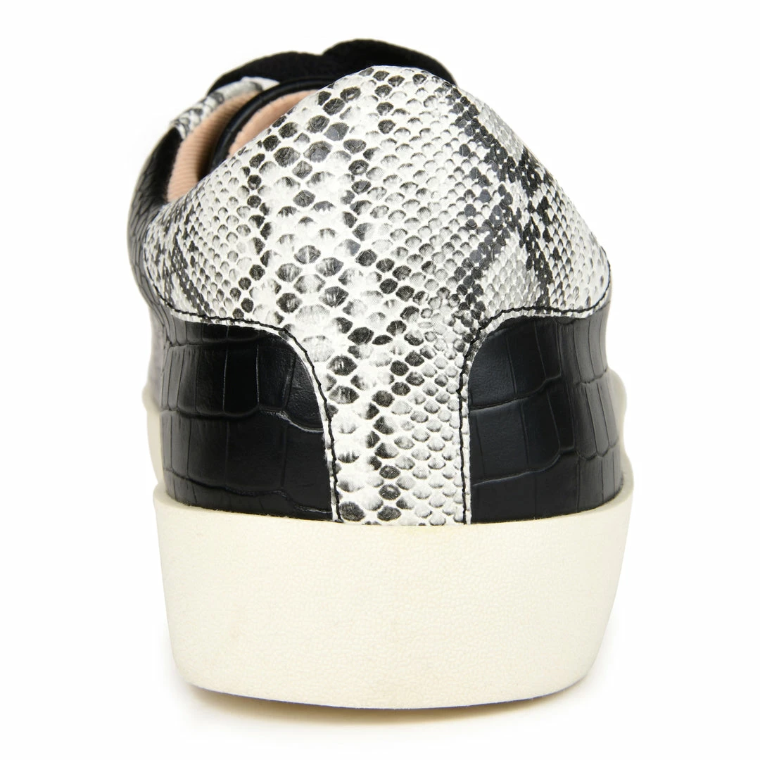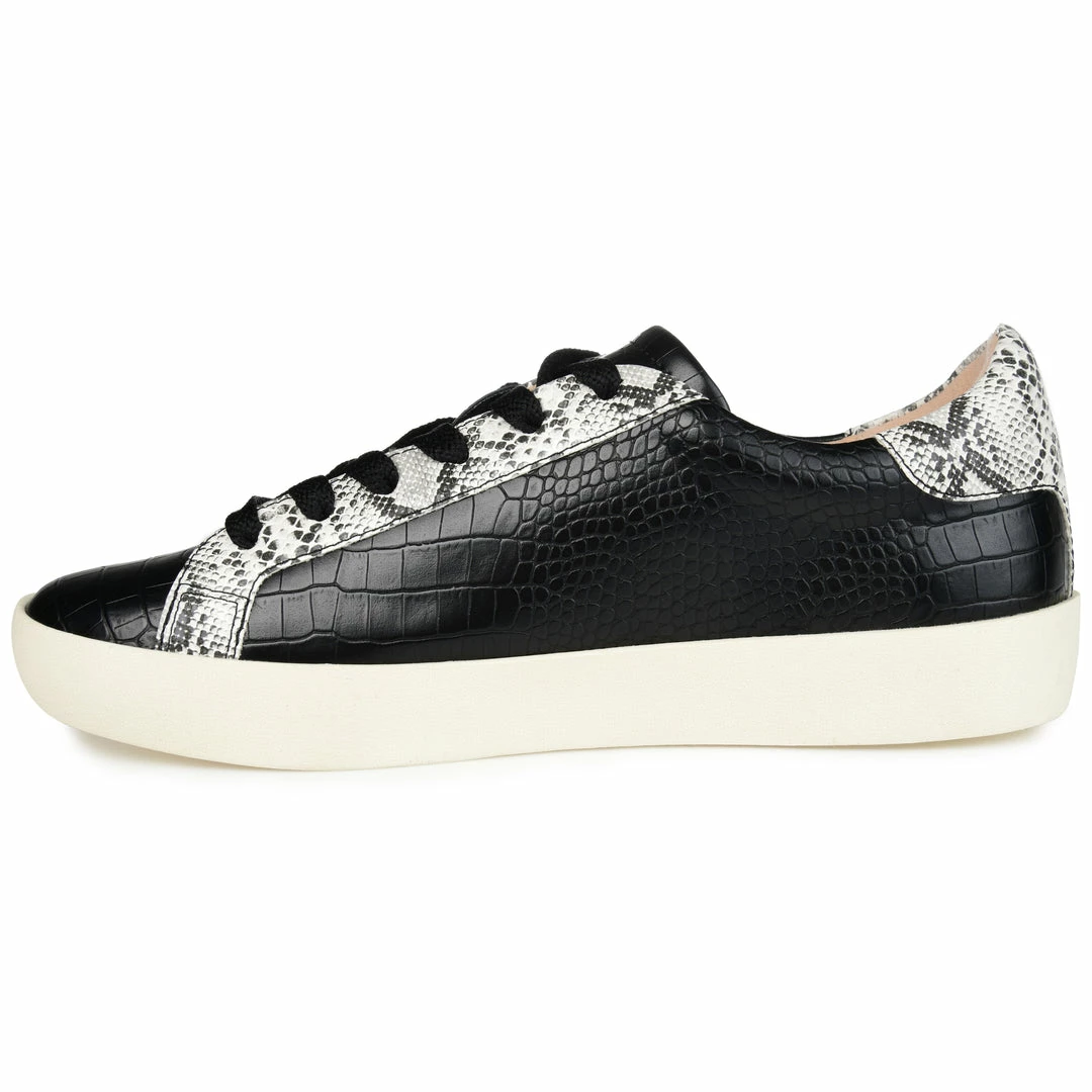 Kick it in a casual lace-up sneaker by Journee Collection detailed with a multi-print design. The Cambry is a low top silhouette that was made with comfort in mind, with a padded ankle and an 8 mm Tru Comfort Foamโข footbed. This sporty look features vegan leather uppers embossed with a snakeskin texture beautifully contrasted by a clean rubber sole for a contemporary finish. Heel Height – 1-inch Heel Type – Sole Platform Height – 1-inch Shoe Width – Medium Closure Type – Lace-up Toe Style – Round Lining – Fabric Upper Material – Vegan Leather Outersole Material – Rubber Footbed – 8 MM Tru Comfort Foamโข