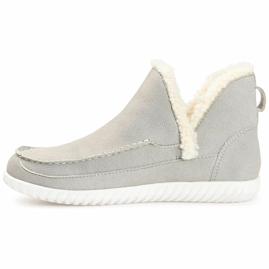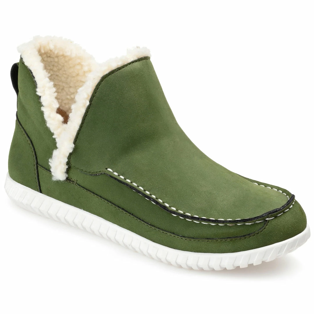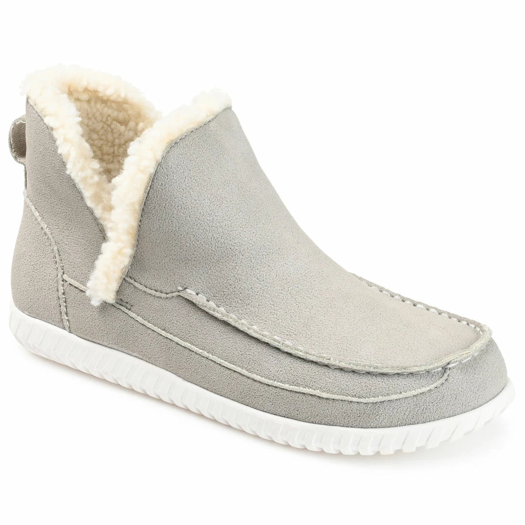 Easy, effortless, and oh-so-comfy. The Capreece by Journee Collection is a round-toe silhouette rendered with velvety-soft vegan suede with a warm teddy fur lining and a 4 mm Tru Comfort Foamβ’ footbed. Cutouts at the sides make them easy to pull on, and a thick treaded sole provides durability. Heel Height – 1-inch Heel Type – Sole Platform Height – 1/2-inch Shaft Height – 4 inches Top Circumference – 11 inches Shoe Width – Medium Closure Type – Slip-on Toe Style – Round Lining – Faux Fur Upper Material – Vegan Leather Outersole Material – Man-made Footbed – 4 MM Tru Comfort Foamβ’