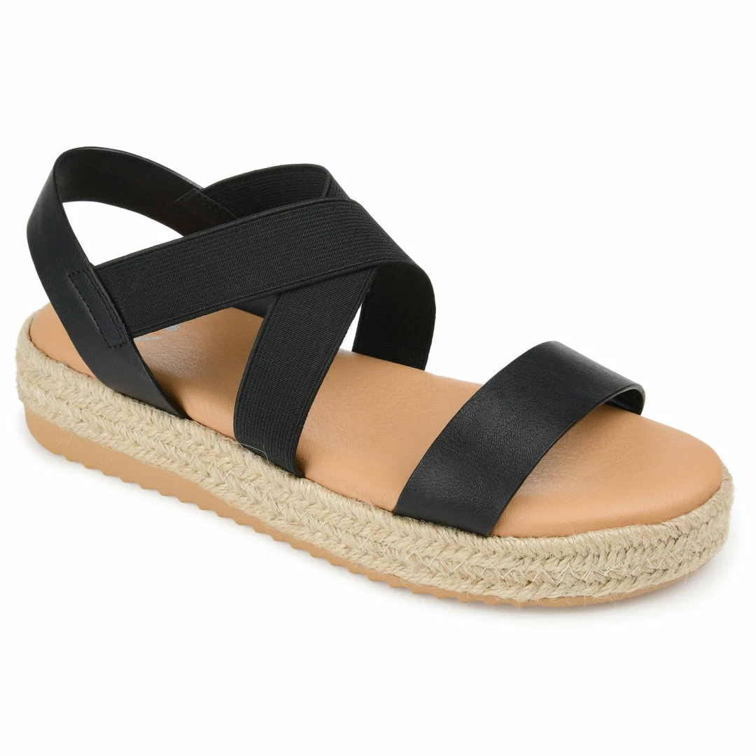 Enjoy the warm weather in the Caroline by Journee Collection. This strappy sandal features elastic uppers for a flexible fit and a 7 mm Tru Comfort Foamβ’ footbed for added support. A walkable sliver wedge heel wrapped in espadrille perfects the design. Heel Height – 1 1/2-inch Heel Type – Sliver Wedge Platform Height – 1-inch Shoe Width – Medium Closure Type – Pull-on Strap Type – Multi -Strap Toe Style – Open Lining – Faux Leather Upper Material – Man-made Outersole Material – Man-made Footbed – 7 MM Tru Comfort Foamβ’