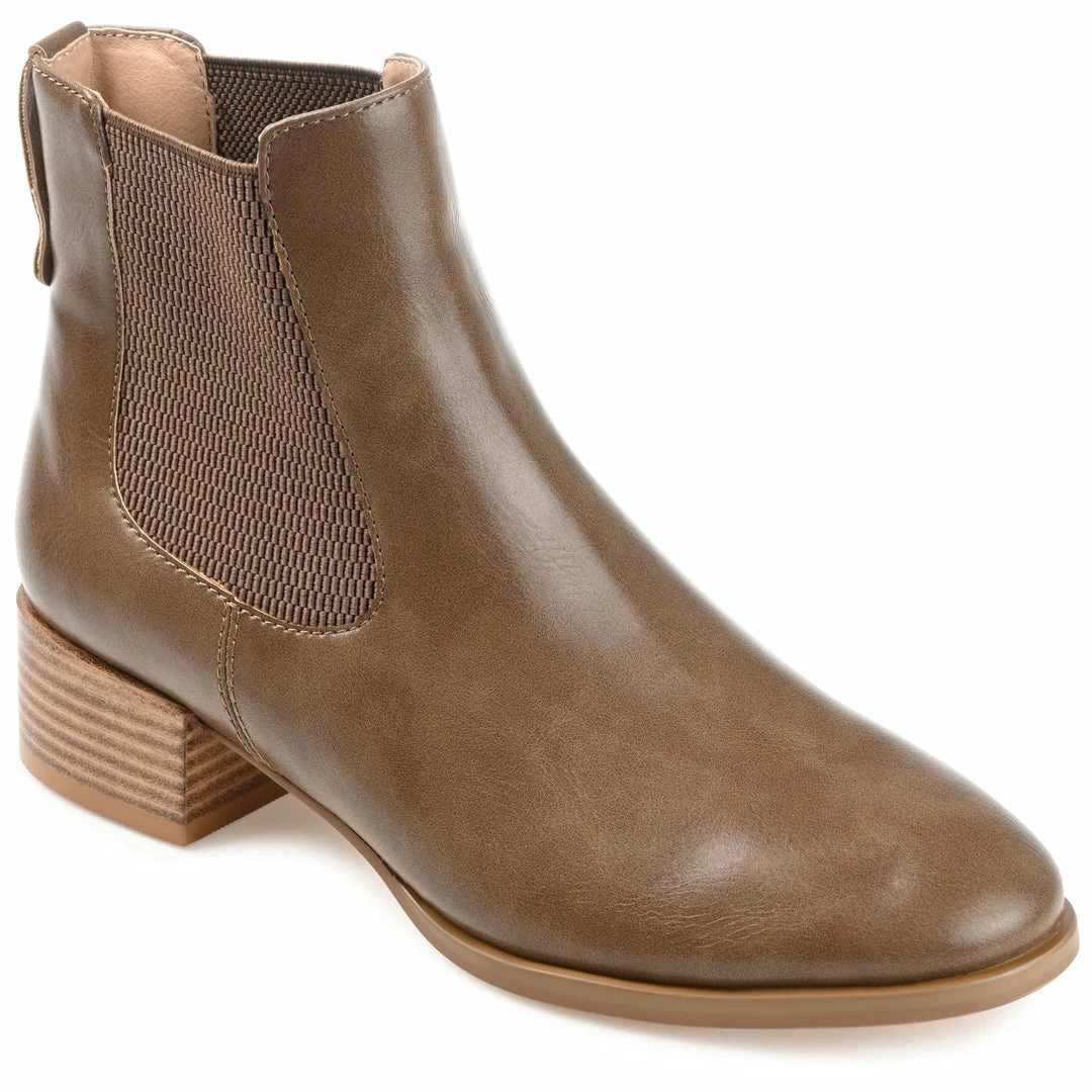 A fall go-to every minimalist needs, the Chayse booties by Journee Collection. This classic Chelsea silhouette features stretch gore at the ankles and a 4 mm Tru Comfort Foamโข insole for comfort and support. Vegan leather and a round-toe finish this sleek design. Heel Height – 1 1/2-inch Heel Type – Stacked Platform Height – Flat-inch Shaft Height – 5 inches Top Circumference – 10 inches Shoe Width – Medium Closure Type – Pull-on Toe Style – Round Lining – Fabric Upper Material – Vegan Leather Outersole Material – Man-made Footbed – 4 MM Tru Comfort Foamโข