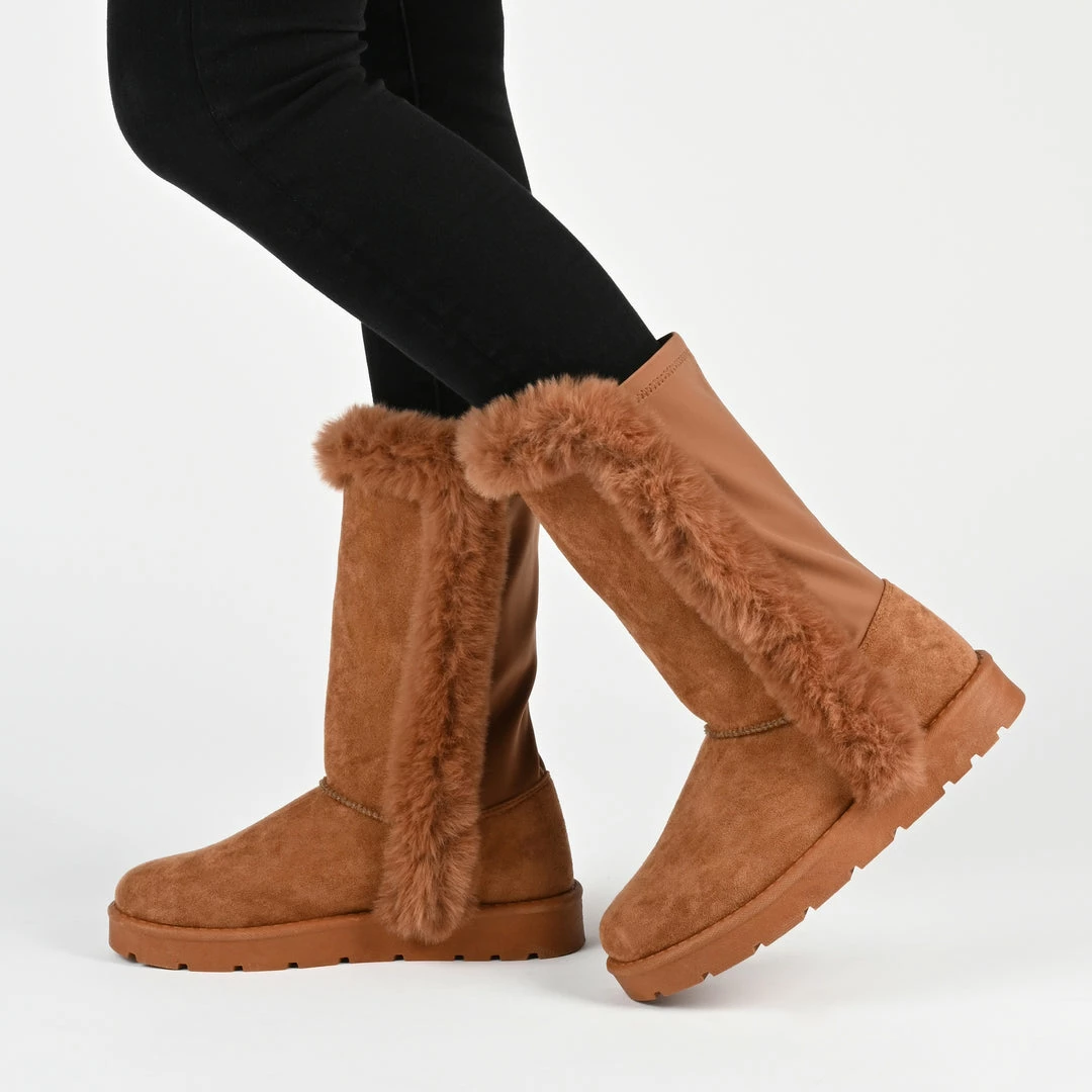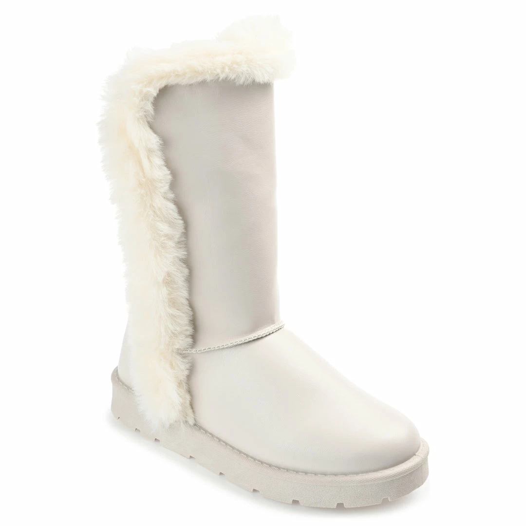 A loungy statement every wardrobe needs, the Cleeo boot by Journee Collection. This round-toe silhouette is rendered with super soft vegan leather with a warm faux fur lining. A 4 mm Tru Comfort Foamβ’ insole makes them super supportive, and a thick sole provides durability. Heel Height – 1 1/2-inch Heel Type – Sole Platform Height – 1-inch Shaft Height – 9 1/2 inches Top Circumference – 12 1/2 inches Shoe Width – Medium Closure Type – Pull-on Toe Style – Round Lining – Faux Fur Upper Material – Vegan Leather Outersole Material – Man-made Footbed – 4 MM Tru Comfort Foamβ’