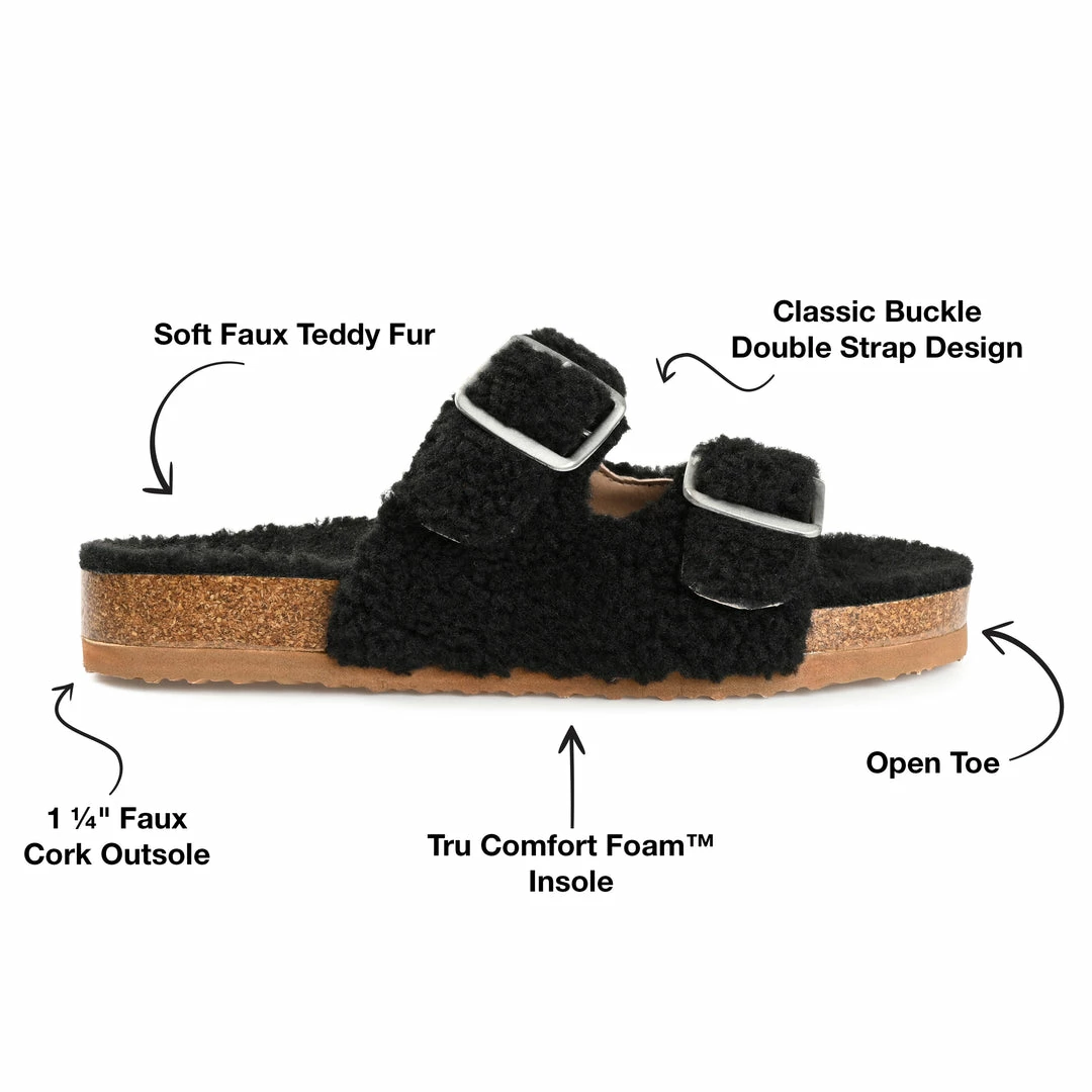 The quintessential slide with a twist, the Delpheen by Journee Collection. This effortless design is covered with the softest teddy bear fur and lined with a 4 mm Tru Comfort Foamβ’ footbed. A durable outsole and chunky buckles finish the look. Heel Height – 1 1/4-inch Heel Type – Sole Platform Height – 1-inch Shoe Width – Medium Closure Type – Slip-on Strap Type – Multi -Strap Toe Style – Open Lining – Faux Leather Upper Material – Faux Fur Outersole Material – Man-made Footbed – 4 MM Tru Comfort Foamβ’