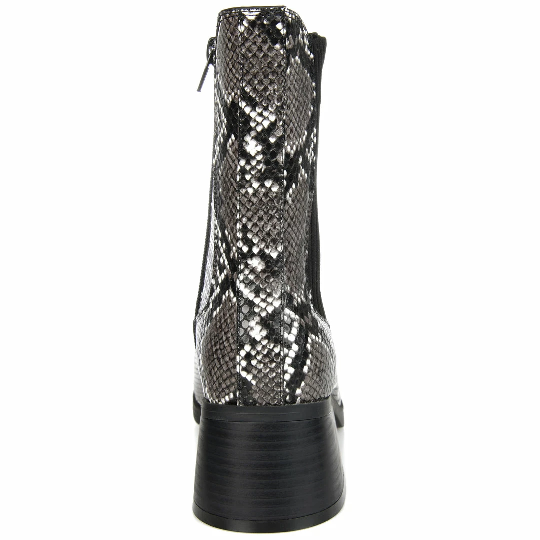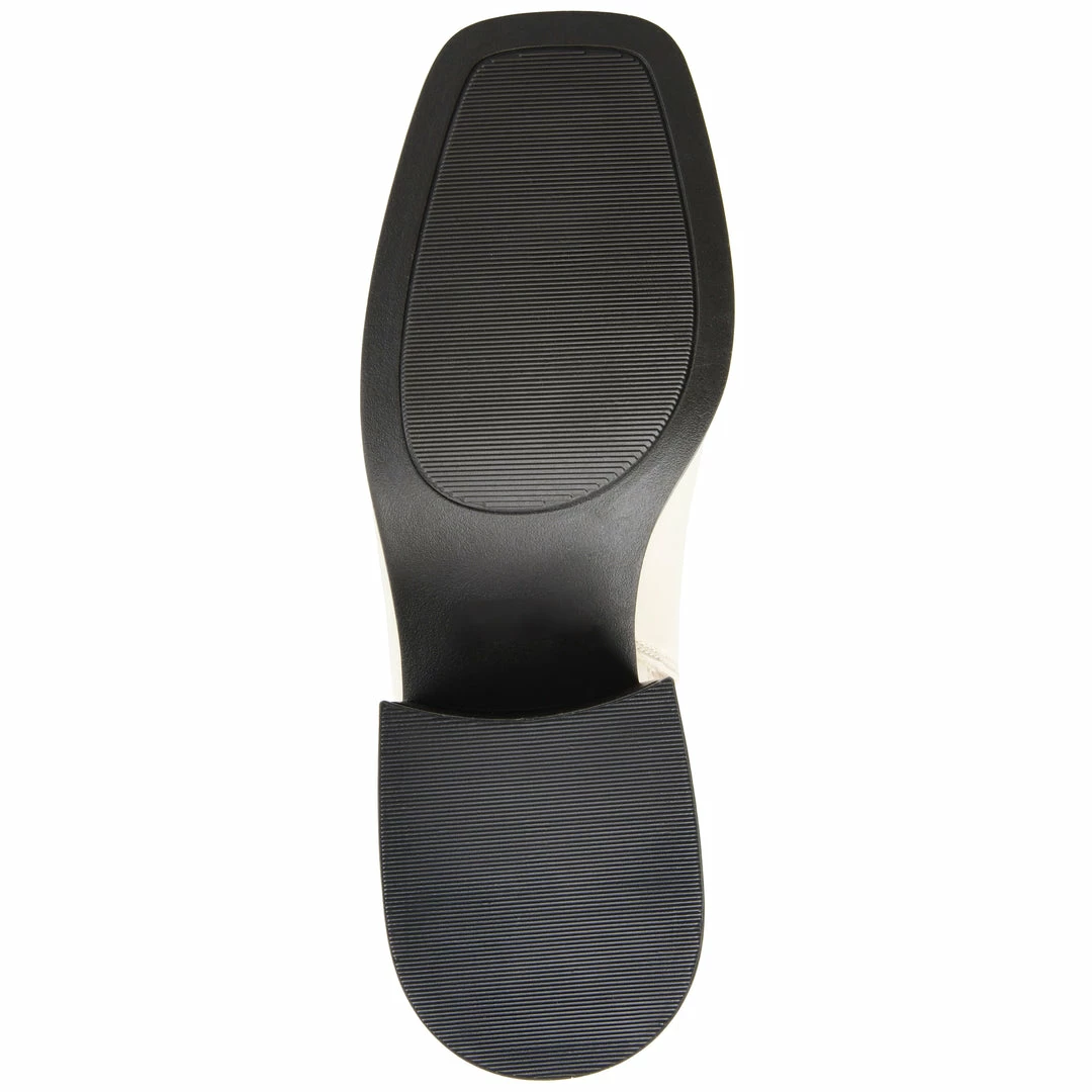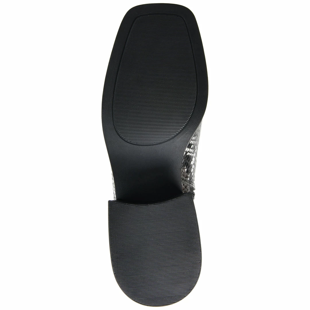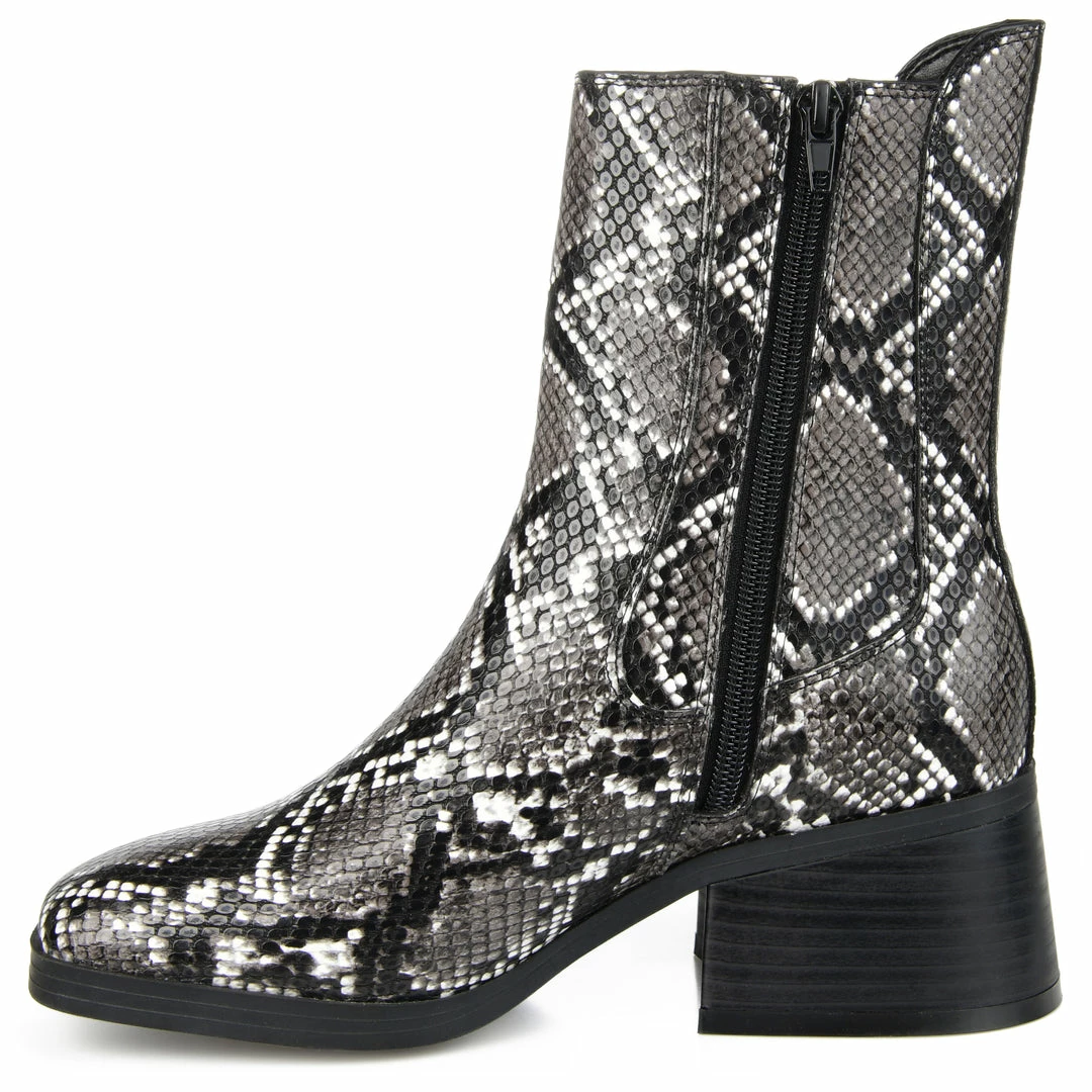Cool contemporary details define the Desree by Journee Collection. A stretch knit panel and an inside zipper accent this square-toe bootie. A low heel paired with a 4 mm Tru Comfort Foamβ’ footbed finish this vegan leather silhouette. Heel Height – 2-inch Heel Type – Stacked Platform Height – 1/2-inch Shaft Height – 7 inches Top Circumference – 10 1/2 inches Shoe Width – Medium Closure Type – Inside Zip Toe Style – Square Lining – Fabric Upper Material – Vegan Leather Outersole Material – Man-made Footbed – 4 MM Tru Comfort Foamβ’