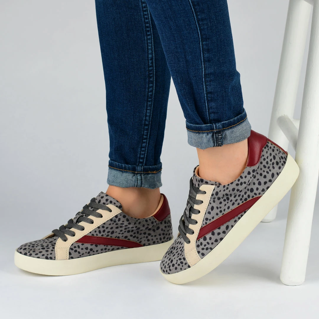 A fashion-forward sneaker by Journee Collection with a curved applique accent at the side for a retro look. The Destany is a classic lace-up design featuring vegan suede uppers and vegan leather two-tone details. A lofty rubber sole, a back of heel cushion, and a 4 mm Tru Comfort Foamโข footbed finish this effortlessly cool look. Heel Height – 1-inch Heel Type – Sole Platform Height – 1-inch Shoe Width – Medium Closure Type – Lace-up Toe Style – Round Lining – Fabric Upper Material – Vegan Leather Outersole Material – Man-made Footbed – 4 MM Tru Comfort Foamโข