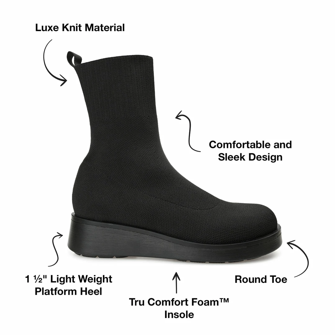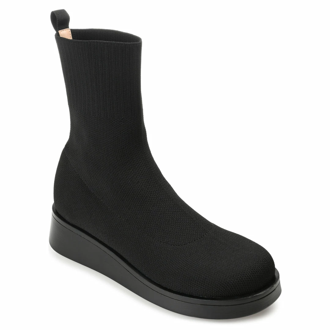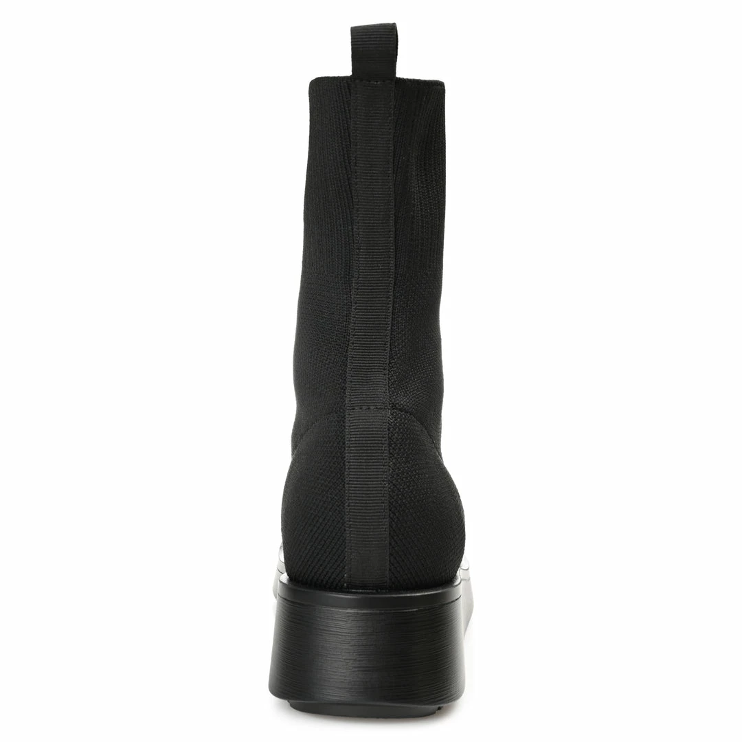Fall fashion made easy, the Ebby booties by Journee Collection. This pull-on silhouette features stretch knit fabric uppers and a 4 mm Tru Comfort Foamβ’ insole for ease and support. A lug sole elevates the design for a retro twist. Heel Height – 1 1/2-inch Heel Type – Platform Platform Height – 1-inch Shaft Height – 7 inches Top Circumference – 9 1/2 inches Shoe Width – Medium Closure Type – Pull-on Toe Style – Round Lining – Fabric Upper Material – Fabric Outersole Material – Man-made Footbed – 4 MM Tru Comfort Foamβ’