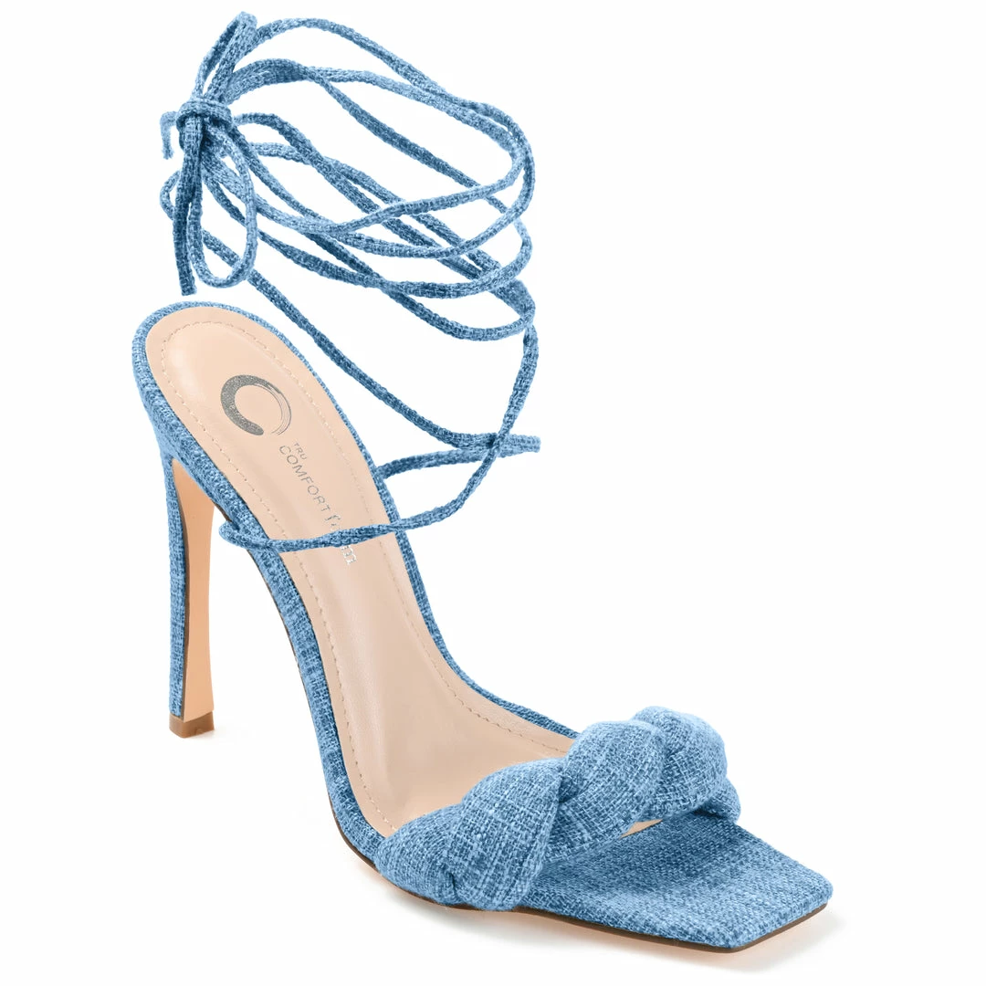 Wrap up your favorite outfits with the Edelie by Journee Collection. This irresistible style features a braided band at the toe complemented by a slender wraparound strap at the ankle. Linnen fabric uppers and a 5 mm Tru Comfort Foamβ’ insole shape the look for extra comfort. Heel Height – 4 1/2-inch Heel Type – Stiletto Platform Height – Flat-inch Shoe Width – Medium Closure Type – Tie Up Strap Type – Ankle Wrap Toe Style – Open Lining – Fabric Upper Material – Fabric Outersole Material – Man-made Footbed – 5 MM Tru Comfort Foamβ’