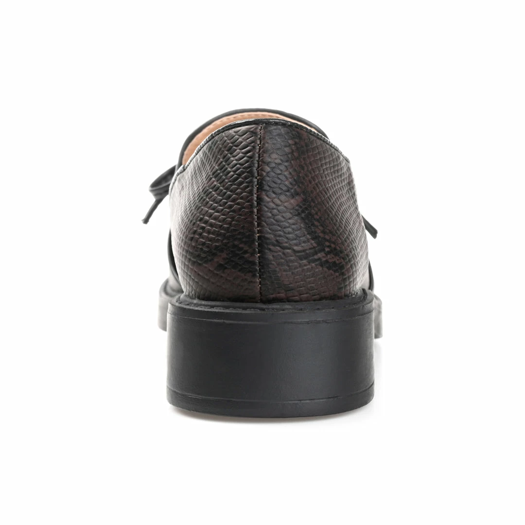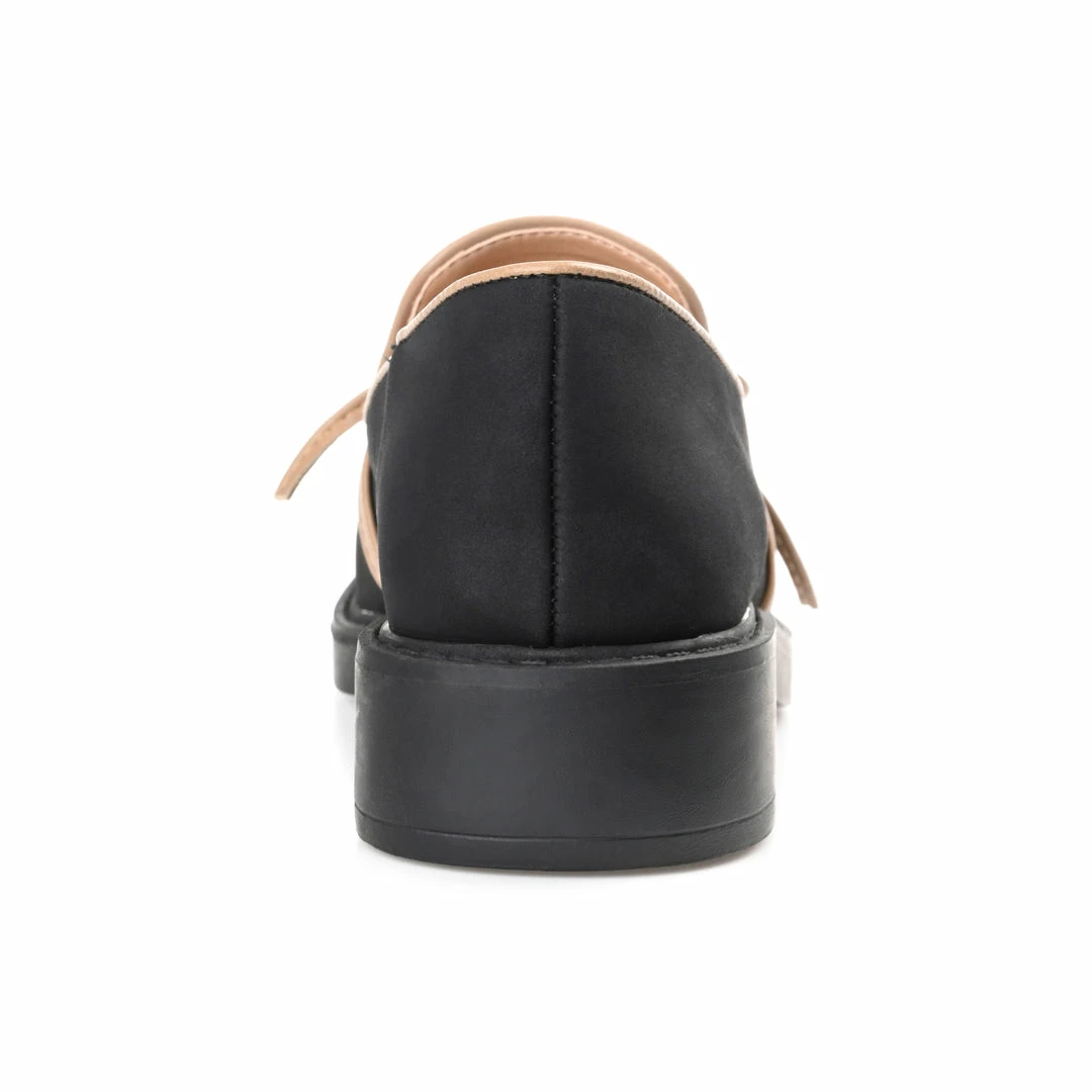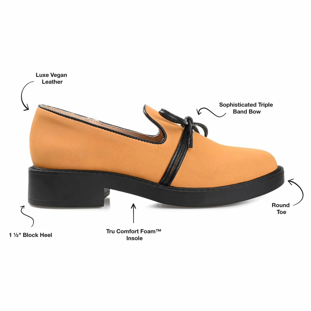 Kick your day off with a retro vibe in the Eilien by Journee Collection. This vegan leather loafer gives any outfit a charming finish with a round-toe and notches at the topline. A 4 mm Tru Comfort Foamβ’ footbed and a low block heel perfect this comfortable yet classy look. Heel Height – 1 1/2-inch Heel Type – Block Heel Platform Height – 1-inch Shoe Width – Medium Closure Type – Slip-on Toe Style – Round Lining – Fabric Upper Material – Vegan Leather Outersole Material – Man-made Footbed – 4 MM Tru Comfort Foamβ’