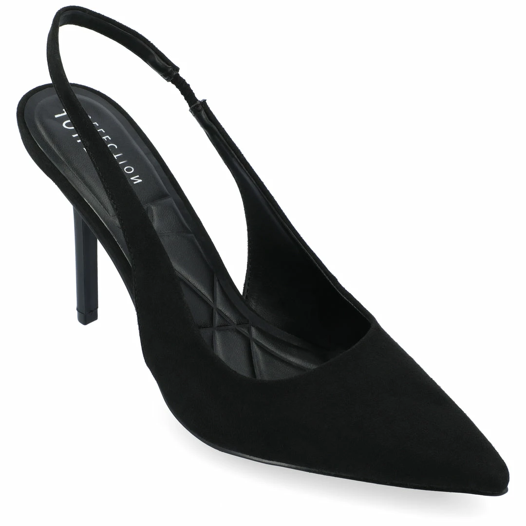 The Elenney heel from Journee Collection will leave your feet feeling more comfortable than ever with their 4 mm Tru Comfort Foamโข footbed. Not only will they give you that comfort, but their supple vegan leather, slingback strap, and square-toe box, will leave you looking more stylish than ever before. To end the look off with something simple, their pull-on feature and stiletto heel make them effortlessly chic. Heel Height – 3 3/4-inch Heel Type – Stiletto Platform Height – Flat-inch Shoe Width – Medium Closure Type – Pull-on Strap Type – Ankle Toe Style – Pointed Lining – Faux Leather Upper Material – Vegan Leather Outersole Material – Man-made Footbed – 4 MM Tru Comfort Foamโข