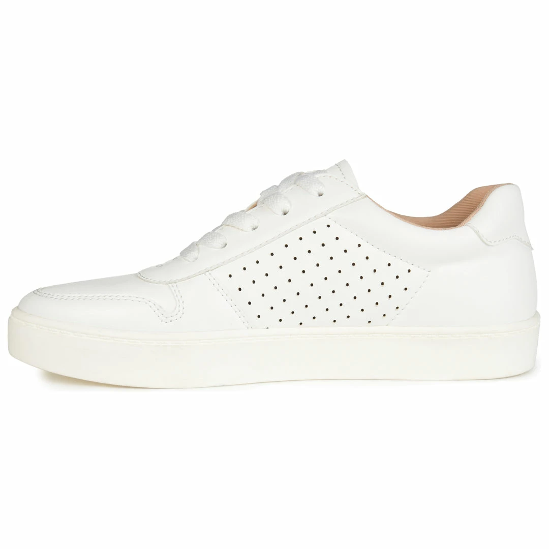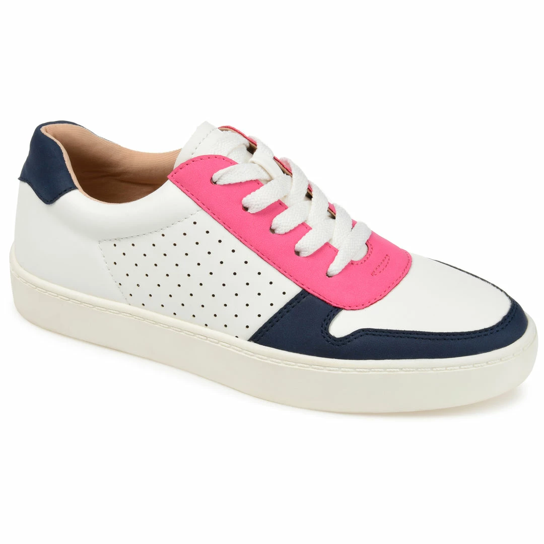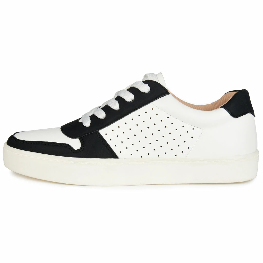 Stride in total comfort, with this street-chic two-tone sneaker by Journee Collection. The Elle is a lace-up design rendered with sleek vegan leather uppers detailed with perforations at the sides. A soft padded ankle and our 8 mm Tru Comfort Foam™ footbed provide all the support you’ll ever need. Heel Height – 1-inch Heel Type – Sole Platform Height – 1-inch Shoe Width – Medium Closure Type – Lace-up Toe Style – Round Lining – Fabric Upper Material – Vegan Leather Outersole Material – Rubber Footbed – 8 MM Tru Comfort Foam™