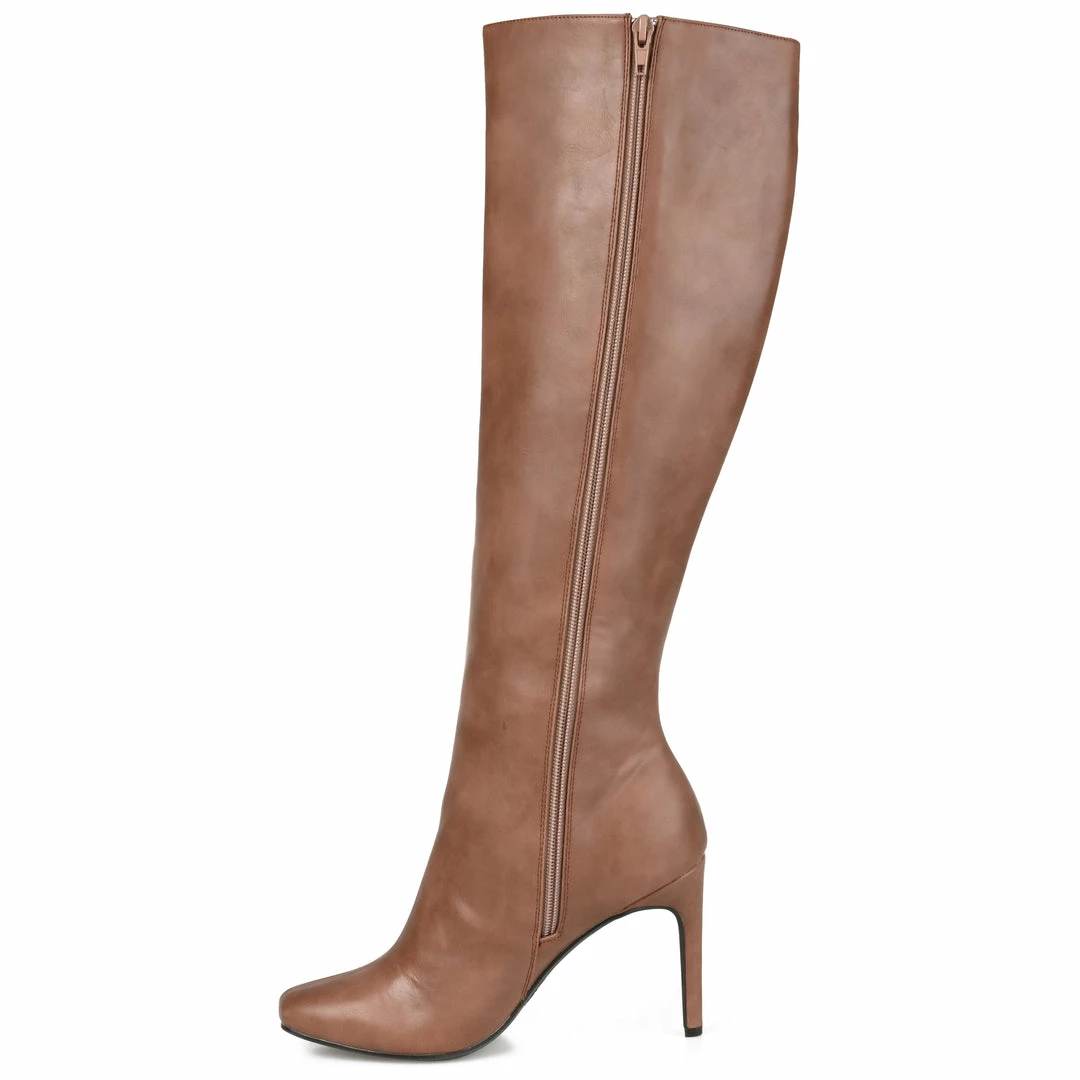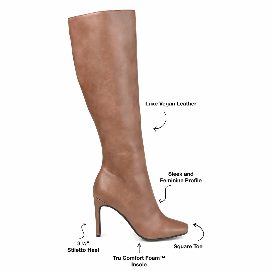 Take your fall ensembles up a few notches in the Glenda boot by Journee Collection. A center seam paired with a square-toe gives this knee-high vegan leather boot a retro twist. This extra-wide calf design is finished with a 4 mm Tru Comfort Foam™ insole and a sky-high stiletto heel. Heel Height – 3 1/2-inch Heel Type – Stiletto Platform Height – Flat-inch Shaft Height – 15 1/2 inches Calf Circumference – 17 inches Top Circumference – 17 3/4 inches Shoe Width – Medium Closure Type – Inside Zip Toe Style – Square Lining – Faux Fur Upper Material – Vegan Leather Outersole Material – Man-made Footbed – 4 MM Tru Comfort Foam™