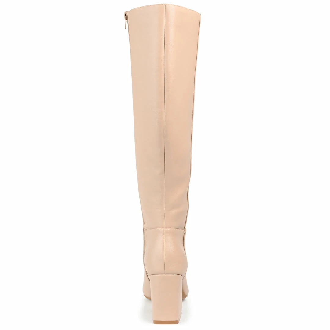 A chic boot that will definitely add a fierce finish to your everyday outfits, the Landree by Journee Collection. This vegan leather boot is detailed with an extra-wide calf and a 4 mm Tru Comfort Foam™ insole for the perfect fit. An inside zipper, block heel, and almond-toe give this mix-and-matchable style a fresh look. Heel Height – 3-inch Heel Type – Block Heel Platform Height – Flat-inch Shaft Height – 15 1/2 inches Calf Circumference – 16 1/2 inches Top Circumference – 17 inches Shoe Width – Medium Closure Type – Inside Zip Toe Style – Almond Lining – Faux Fur Upper Material – Vegan Leather Outersole Material – Man-made Footbed – 4 MM Tru Comfort Foam™