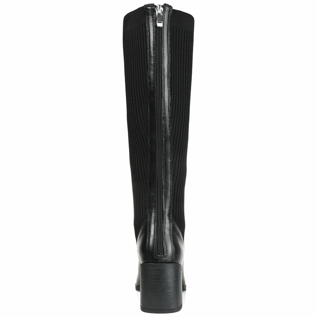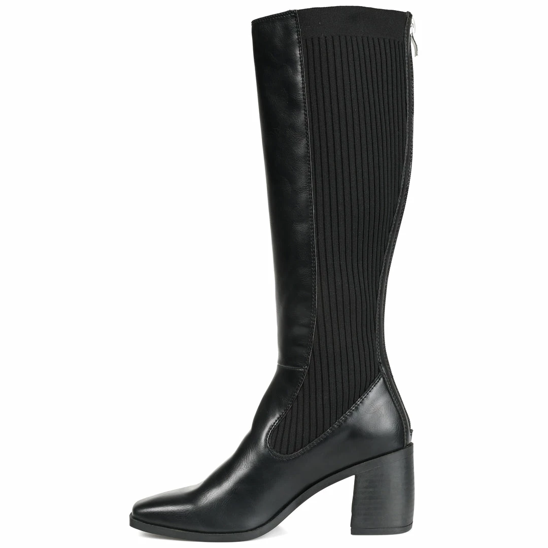 Take your wardrobe to the next level with the Winny by Journee Collection. This extra-wide calf boot features a zipper at the back for easy entry and a stretch knit panel. A 4 mm Tru Comfort Foamβ’ footbed offers the perfect amount of support as you walk, and soft vegan leather adds a sophisticated finish. Heel Height – 2 3/4-inch Heel Type – Stacked Platform Height – Flat-inch Shaft Height – 14 inches Calf Circumference – 15 1/2 inches Top Circumference – 16 inches Shoe Width – Medium Closure Type – Back Heel Zip Toe Style – Square Lining – Fabric Upper Material – Vegan Leather Outersole Material – Man-made Footbed – 4 MM Tru Comfort Foamβ’