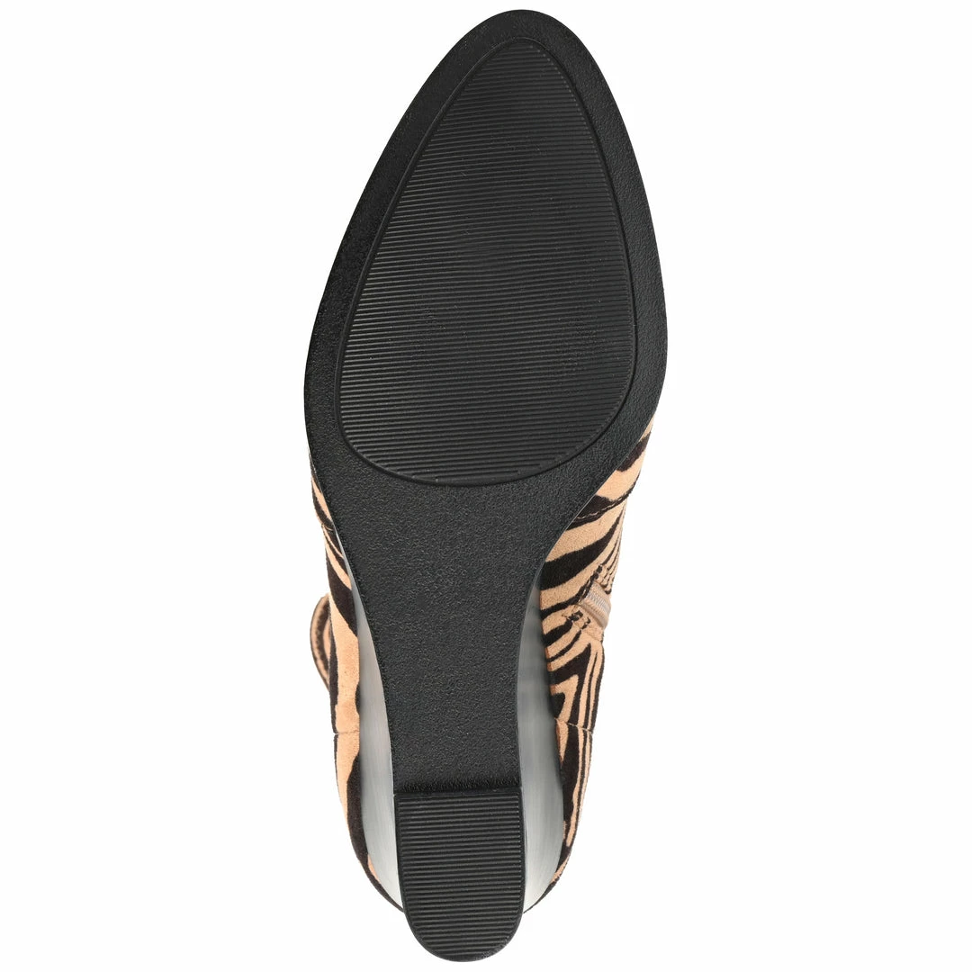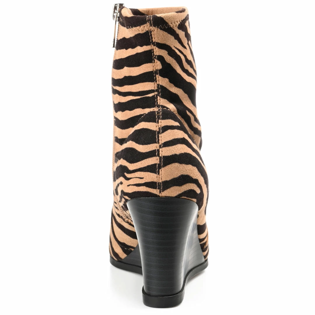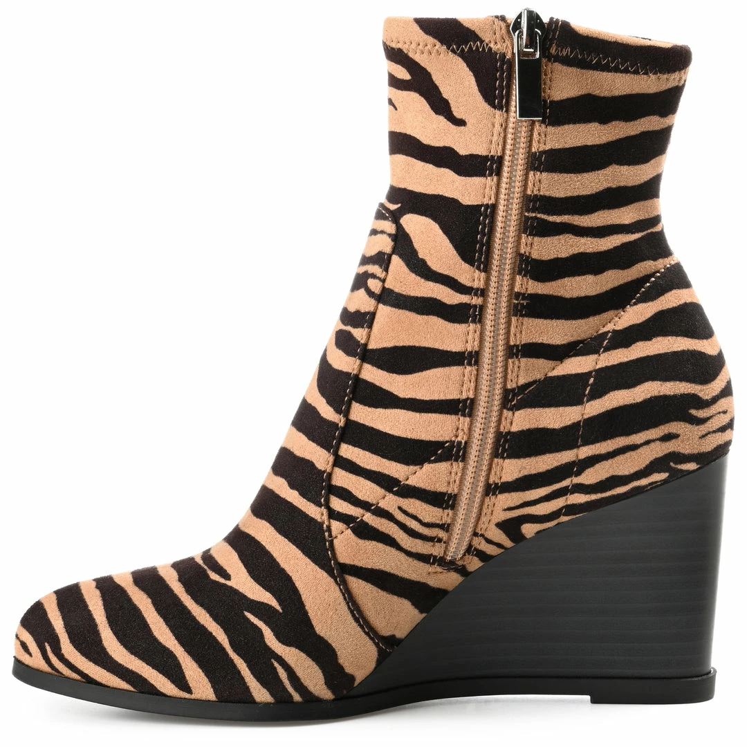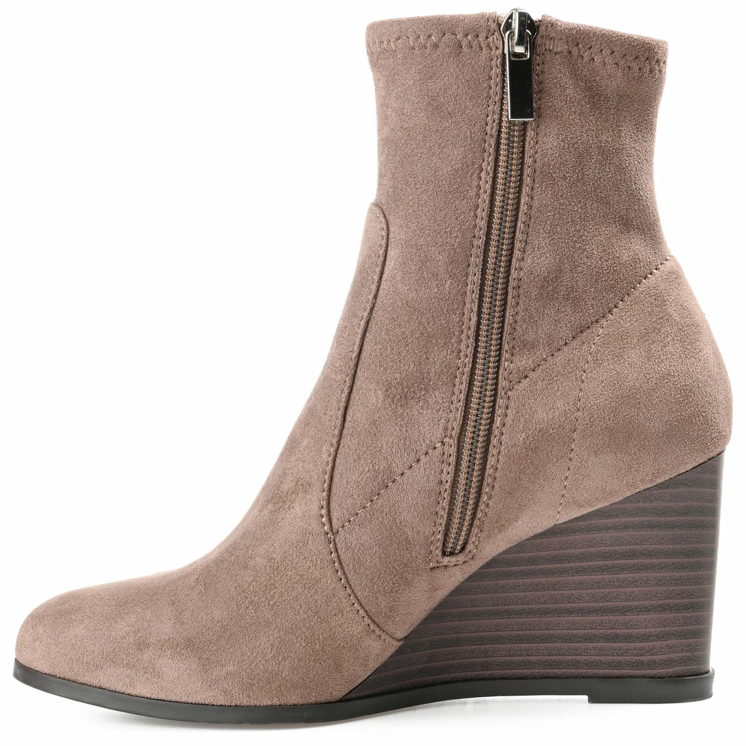 Make every sidewalk your personal runway in this upscale look. The Hepburn is a vegan leather bootie that rises to the ankles with a wedge heel that creates a leg-lengthening look. This design by Journey & Crew is completed with an almond-toe and a with 4 mm Tru Comfort Foamโข footbed for extra cushion to your step. Heel Height – 3 1/4-inch Heel Type – Wedge Platform Height – Flat-inch Shaft Height – 5 inches Top Circumference – 9 1/2 inches Shoe Width – Medium Closure Type – Inside Zip Toe Style – Almond Lining – Fabric Upper Material – Vegan Leather Outersole Material – Man-made Footbed – 4 MM Tru Comfort Foamโข