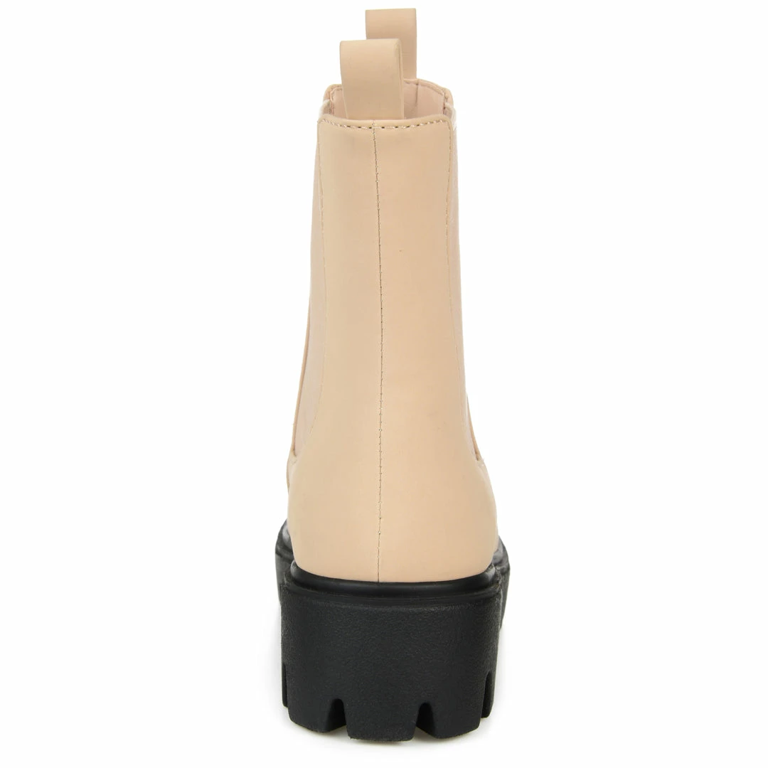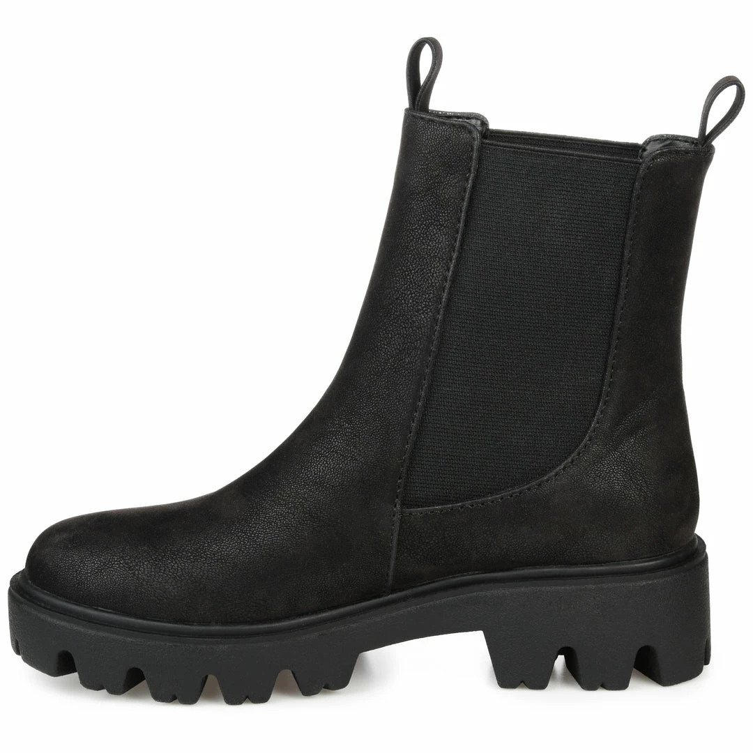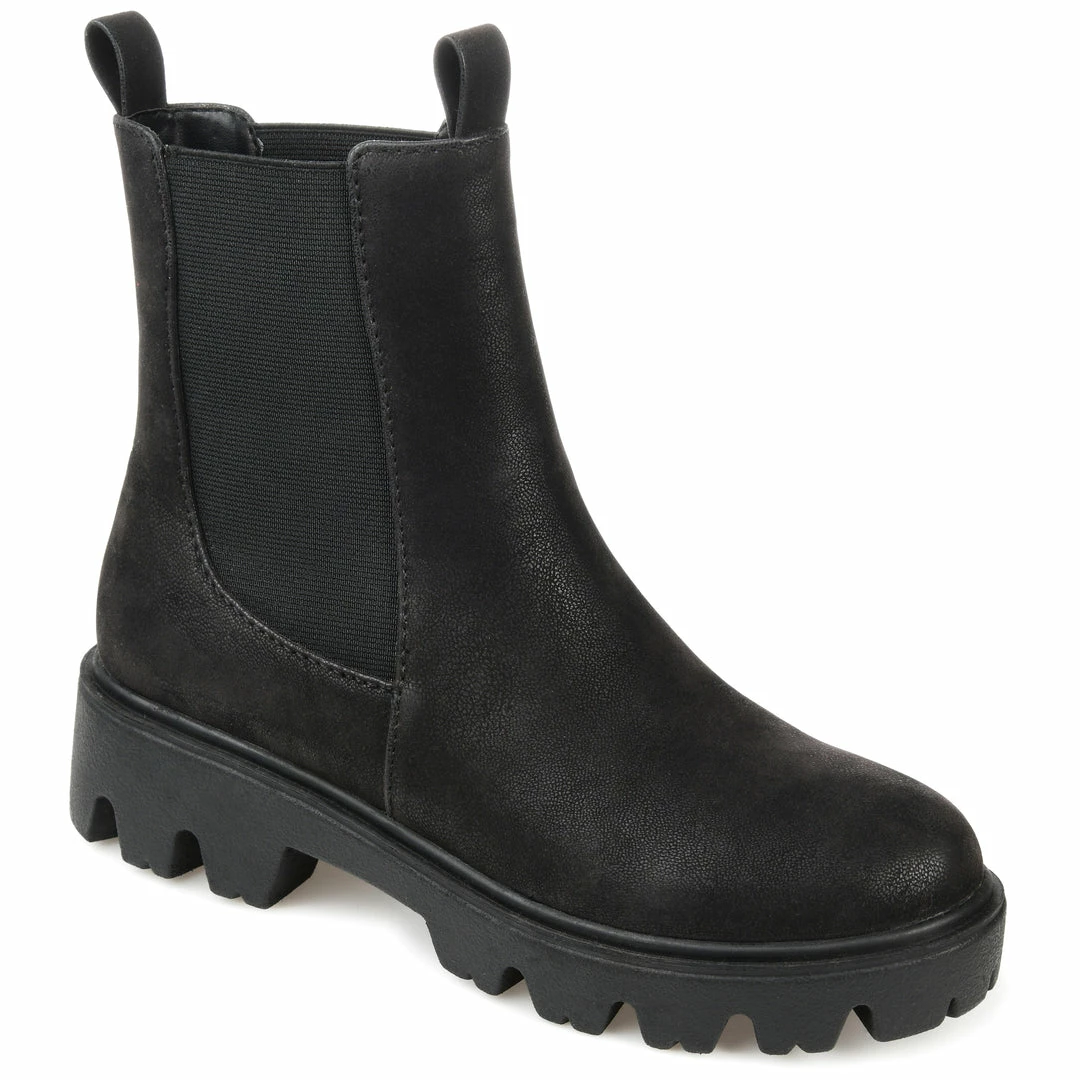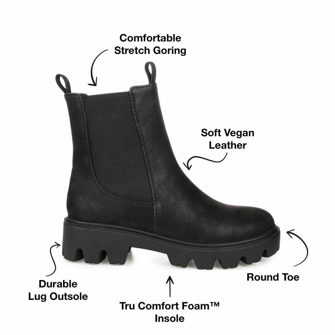 A 90s throwback that is sure to become a favorite, the Ivette by Journee Collection. This lug-soled chelsea bootie is topped with twin pull tabs and stretch gore panels on each side. A round-toe, vegan leather, and the softest 4 mm Tru Comfort Foamโข insole perfects this retro look. Heel Height – 2-inch Heel Type – Block Heel Platform Height – 1-inch Shaft Height – 5 1/2 inches Top Circumference – 10 inches Shoe Width – Medium Closure Type – Pull-on Toe Style – Round Lining – Fabric Upper Material – Vegan Leather Outersole Material – Man-made Footbed – 4 MM Tru Comfort Foamโข