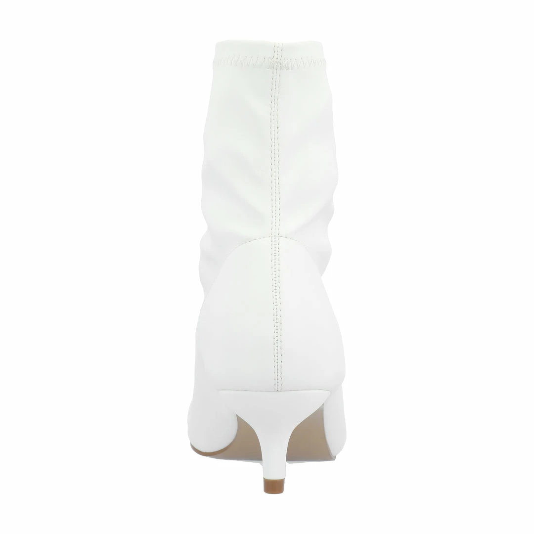A style that’s certain to make everyone you pass do a double take, the Jadde booties by Journee Collection. This pointed-toe bootie is the definition of sleek, thanks to the kitten heel and sock-inspired stitch details. A 4 mm Tru Comfort Foamβ’ footbed and stretchy vegan leather make them super comfy. At Journee Collection, our booties will give you that comfortable yet stylish look, perfect for when youβre in the office all the way to a fun night out with the girls. Heel Height – 2-inch Heel Type – Kitten Heel Platform Height – Flat-inch Shaft Height – 6 inches Top Circumference – 9 inches Shoe Width – Medium Closure Type – Pull-on Toe Style – Pointed Lining – Fabric Upper Material – Vegan Leather Outersole Material – Man-made Footbed – 4 MM Tru Comfort Foamβ’