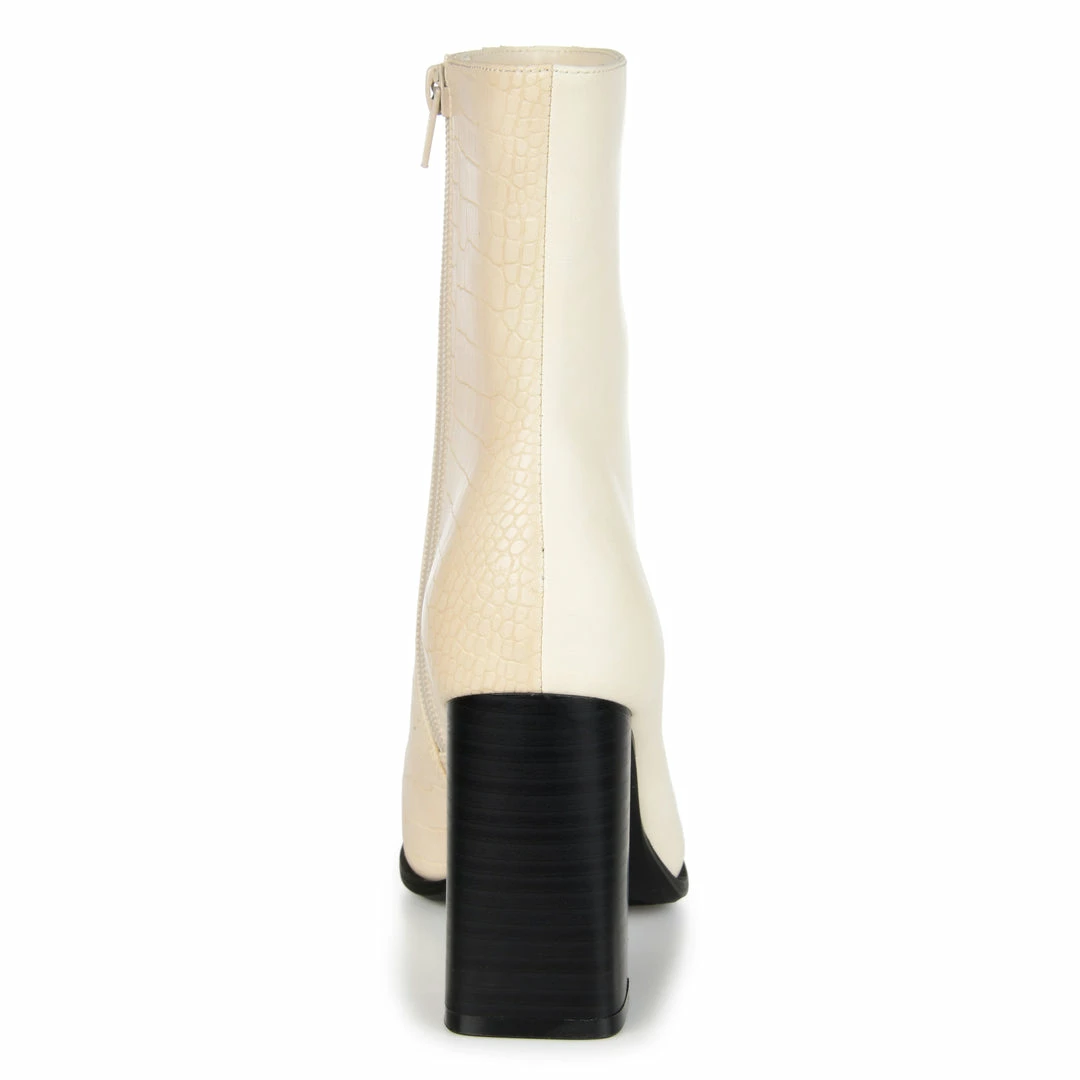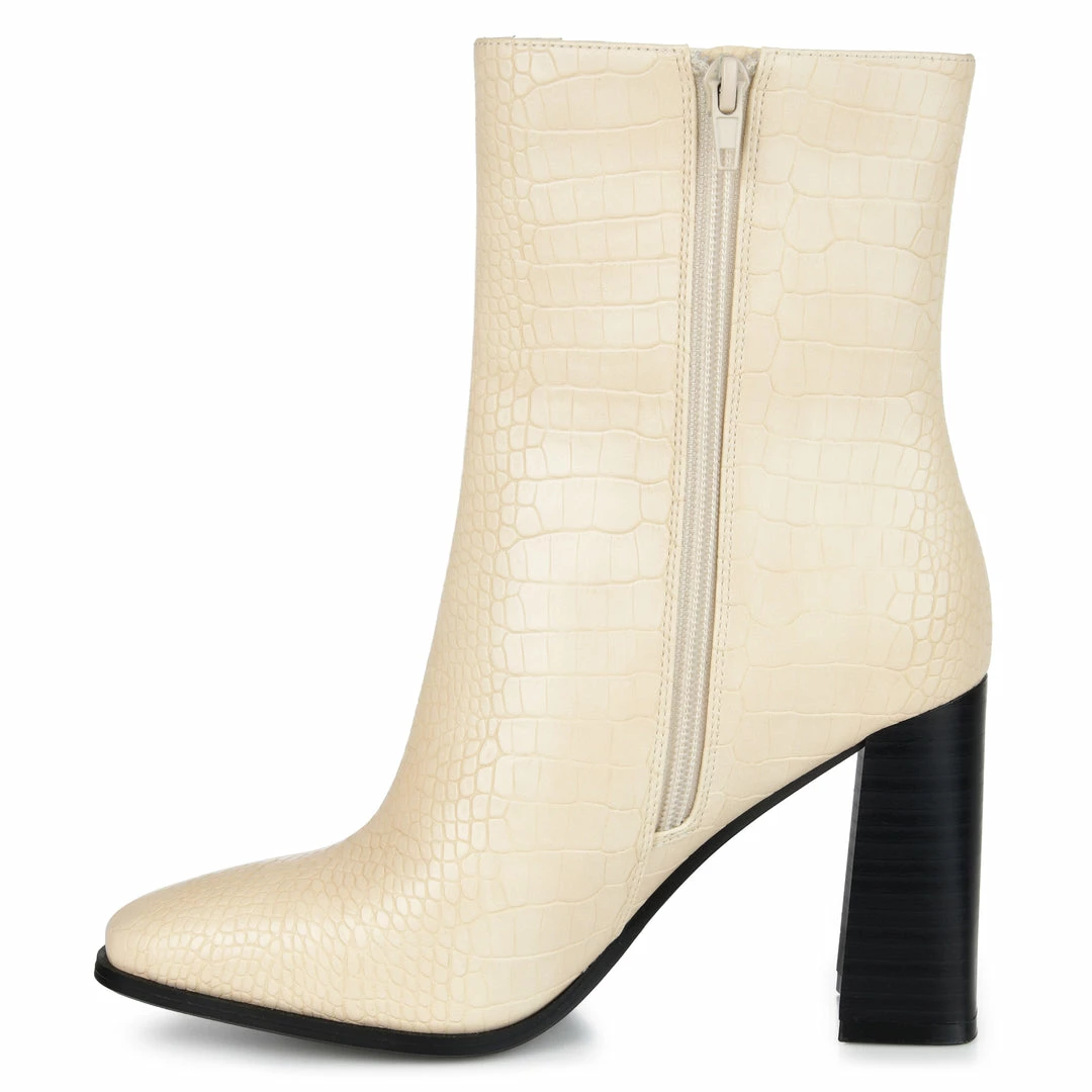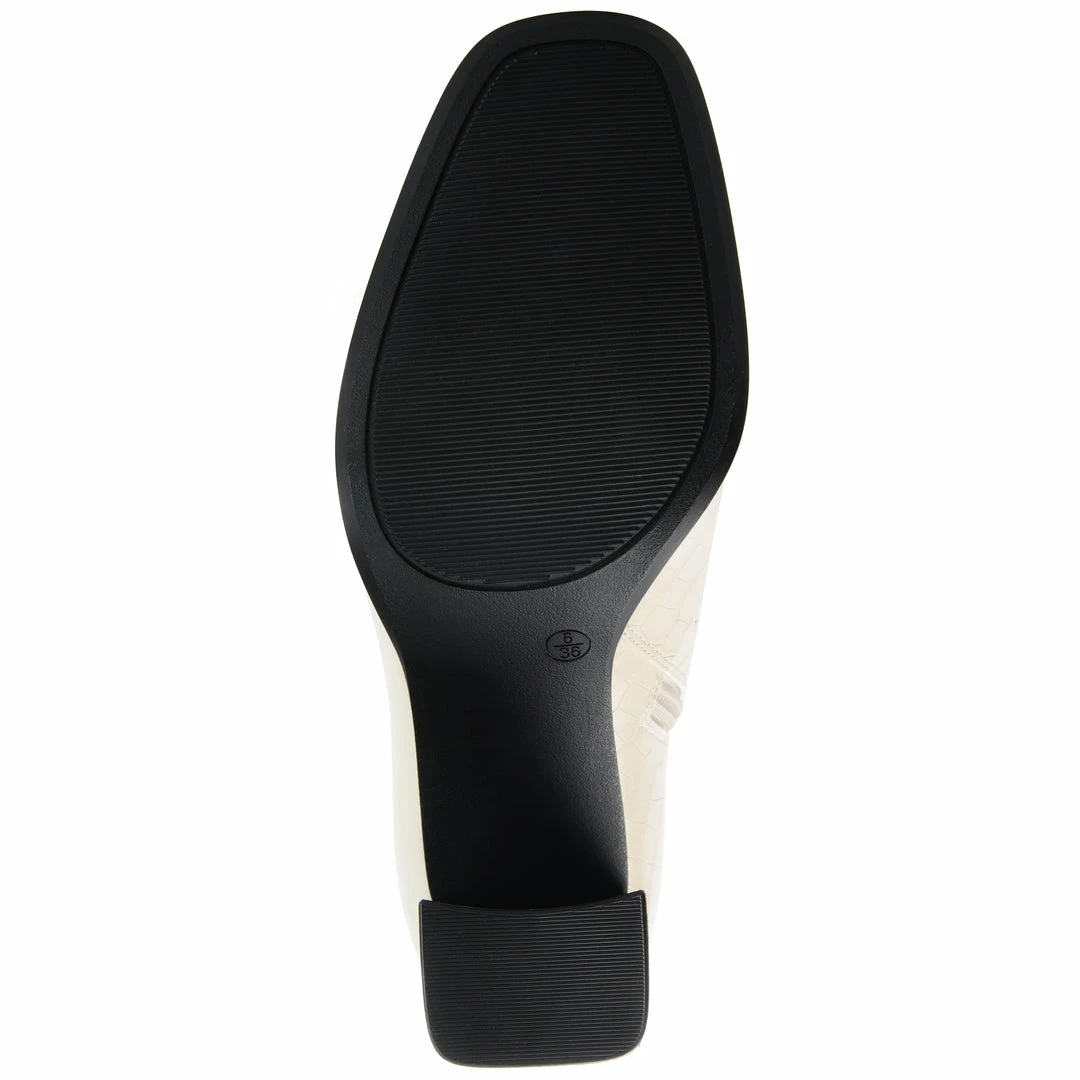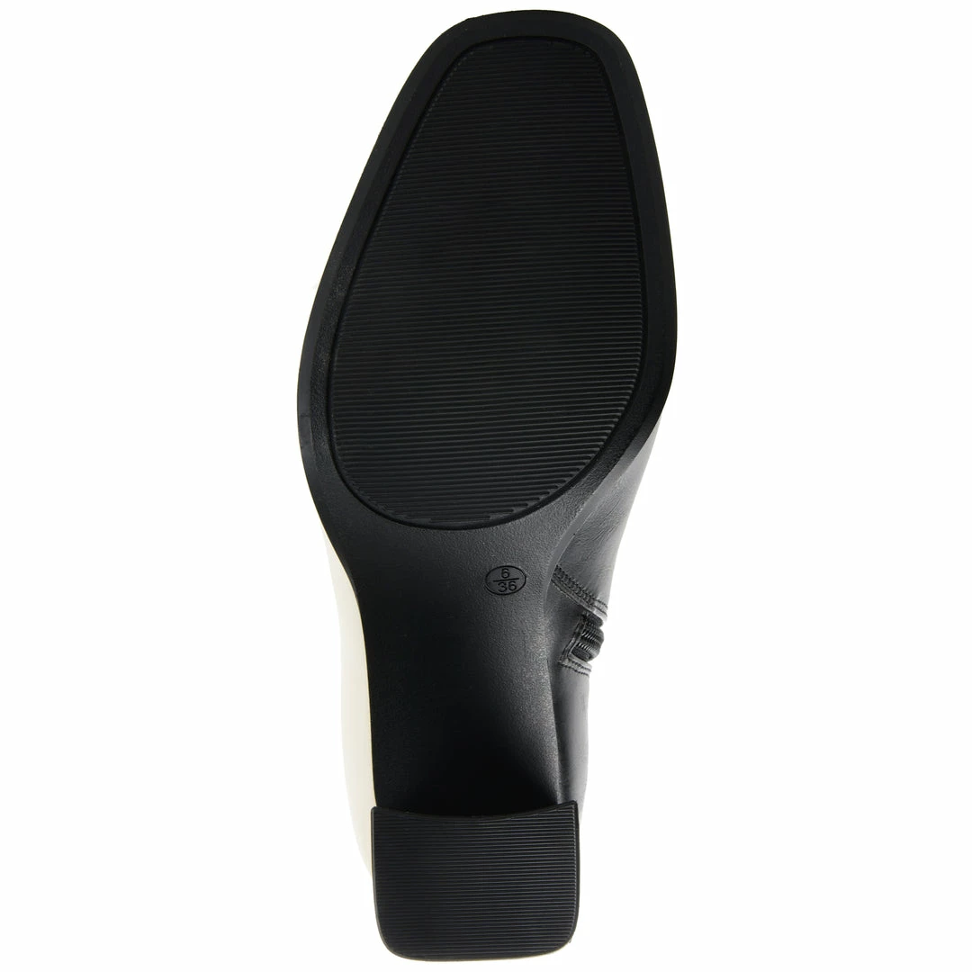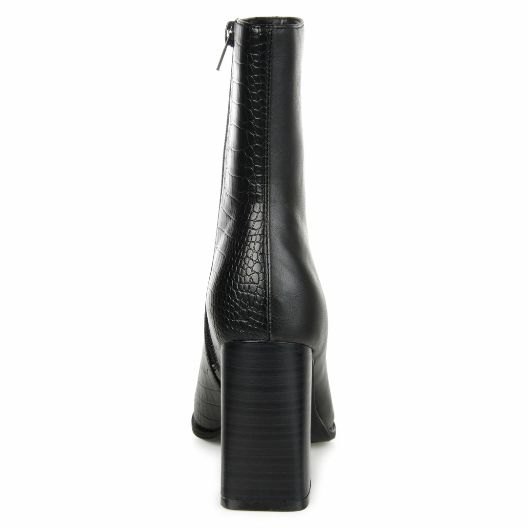 Reach new heights in this ultra-cool bootie, the January by Journee Collection. This two-tone bootie features a square-toe and a lofty block heel. An inside zipper offers easy entry, and a 4 mm Tru Comfort Foamβ’ insole makes them a breeze to walk in. Heel Height – 3 1/2-inch Heel Type – Stacked Platform Height – Flat-inch Shaft Height – 6 inches Top Circumference – 11 inches Shoe Width – Medium Closure Type – Inside Zip Toe Style – Square Lining – Fabric Upper Material – Vegan Leather Outersole Material – Man-made Footbed – 4 MM Tru Comfort Foamβ’