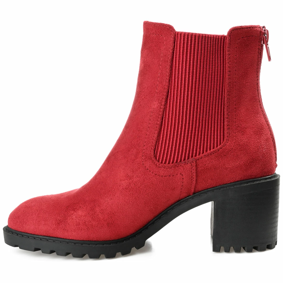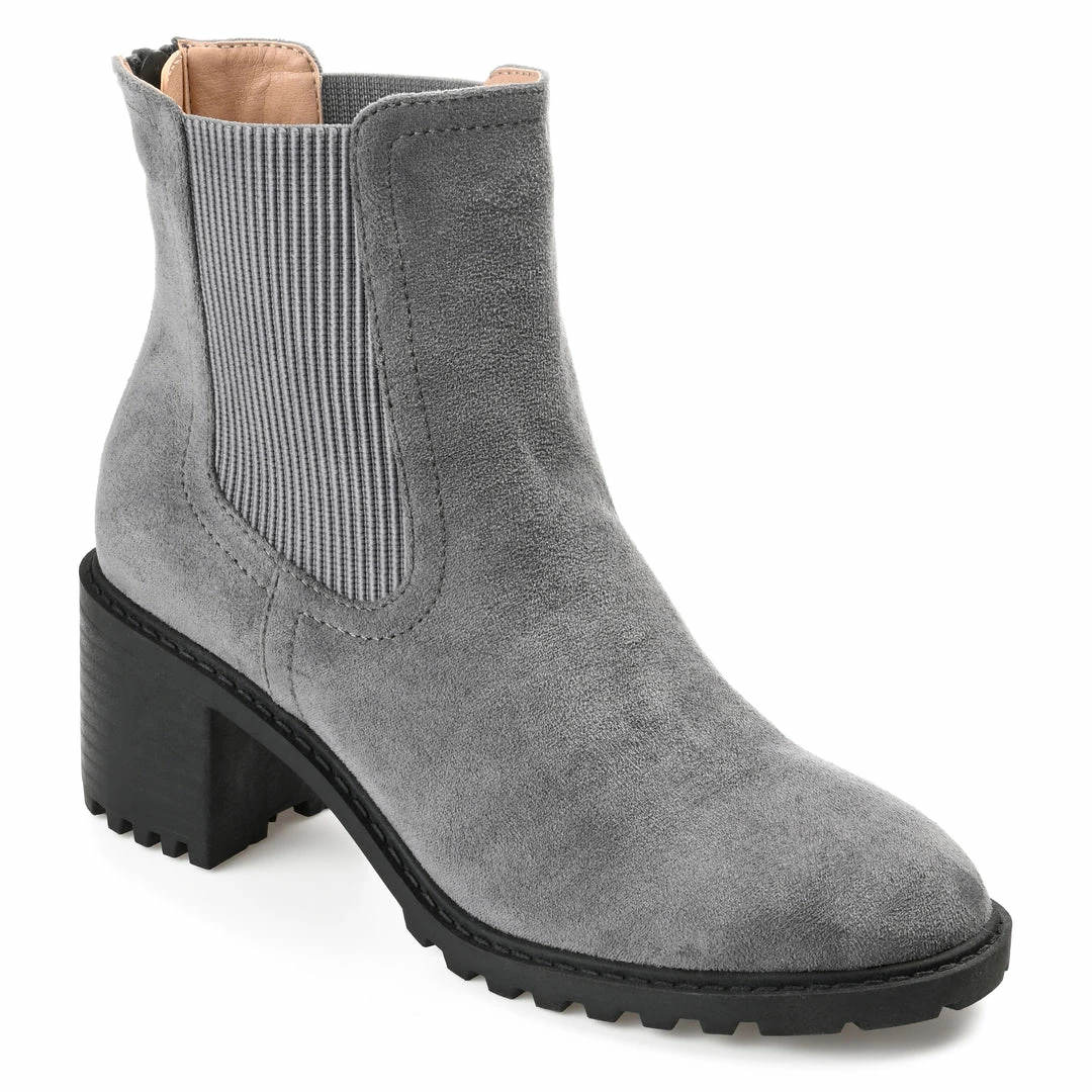 The Jentry by Journee Collection isn’t your ordinary chelsea bootie. Shaped with vegan leather, this chelsea style is made to fit comfortably with a 4 mm Tru Comfort Foamโข insole and stretch panels at the ankles. A block heel elevates the design, and a round-toe finishes the look. Heel Height – 3-inch Heel Type – Stacked Platform Height – 1-inch Shaft Height – 5 inches Top Circumference – 10 inches Shoe Width – Medium Closure Type – Back Heel Zip Toe Style – Round Lining – Fabric Upper Material – Vegan Leather Outersole Material – Man-made Footbed – 4 MM Tru Comfort Foamโข