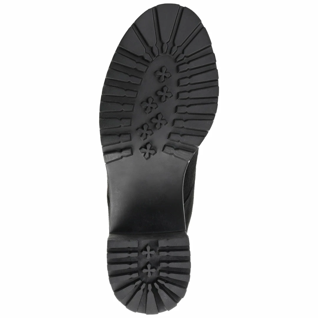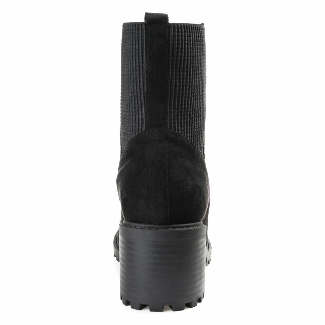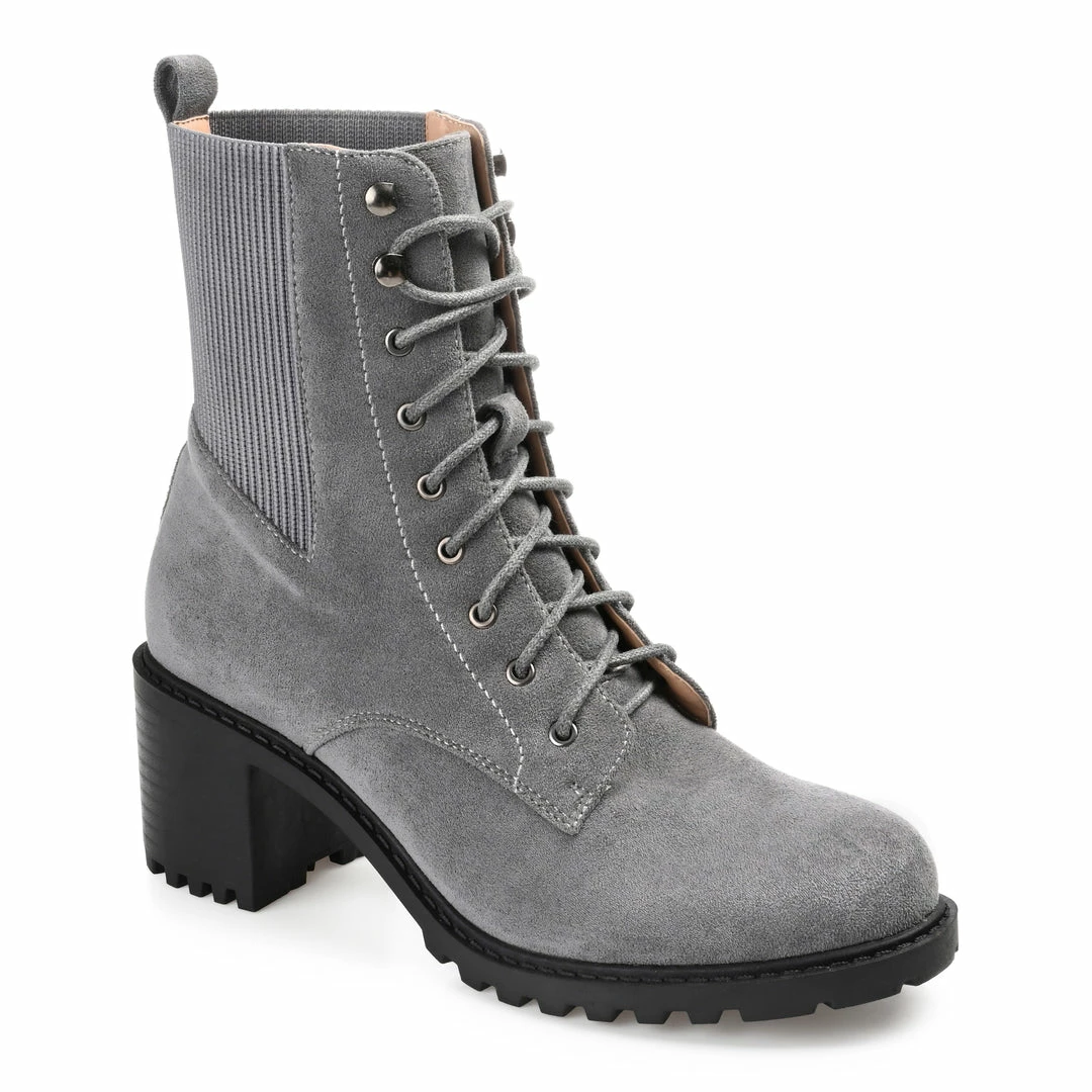 Pull them on and go, the Kassia by Journee Collection. This combat bootie features soft vegan leather, the perfect ankle height, and a stacked chunky heel. The 4 mm Tru Comfort Foamβ’ footbed adds support, and a classic lace-up closure paired with a stretch panel creates an easy entry. Heel Height – 2 1/2-inch Heel Type – Stacked Platform Height – 1/2-inch Shaft Height – 6 inches Top Circumference – 9 1/2 inches Shoe Width – Medium Closure Type – Lace-up Toe Style – Round Lining – Fabric Upper Material – Vegan Leather Outersole Material – Man-made Footbed – 4 MM Tru Comfort Foamβ’