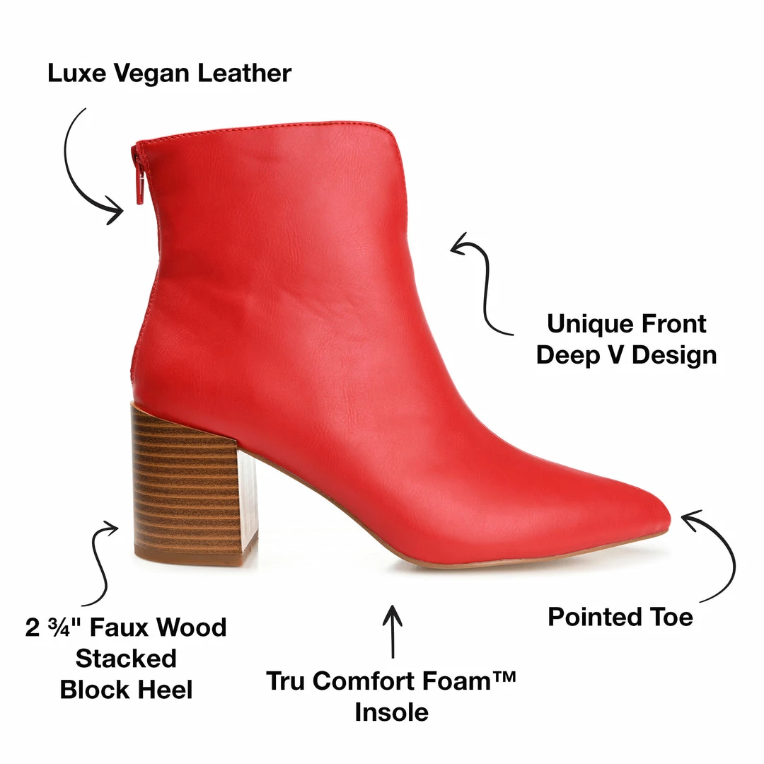 The Kayden by Journee Collection is ready to elevate your favorite ensembles. This vegan leather ankle bootie keeps it street-chic with a pointed-toe and stacked block heel. A 4 mm Tru Comfort Foamβ’ footbed completes the design for all-day support. Heel Height – 2 3/4-inch Heel Type – Stacked Platform Height – Flat-inch Shaft Height – 5 inches Top Circumference – 10 1/4 inches Shoe Width – Medium Closure Type – Back Heel Zip Toe Style – Pointed Lining – Fabric Upper Material – Vegan Leather Outersole Material – Man-made Footbed – 4 MM Tru Comfort Foamβ’