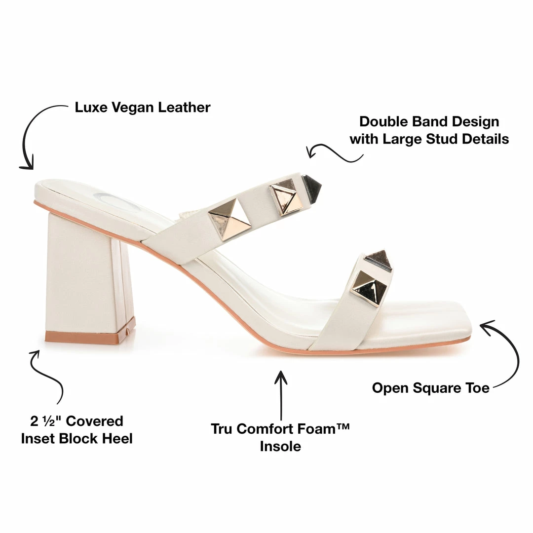 A vintage but cutting edge look that’s just as relevant today as it was back in the day, the Kirian by Journee Collection. This bold look keeps you comfy with vegan leather uppers and a 4 mm Tru Comfort Foamβ’ insole. Double straps topped with gold-toned studs and an open square toe make them a real statement piece. Heel Height – 2 1/2-inch Heel Type – Block Heel Platform Height – Flat-inch Shoe Width – Medium Closure Type – Slip-on Strap Type – Multi -Strap Toe Style – Open Lining – Faux Leather Upper Material – Vegan Leather Outersole Material – Man-made Footbed – 4 MM Tru Comfort Foamβ’